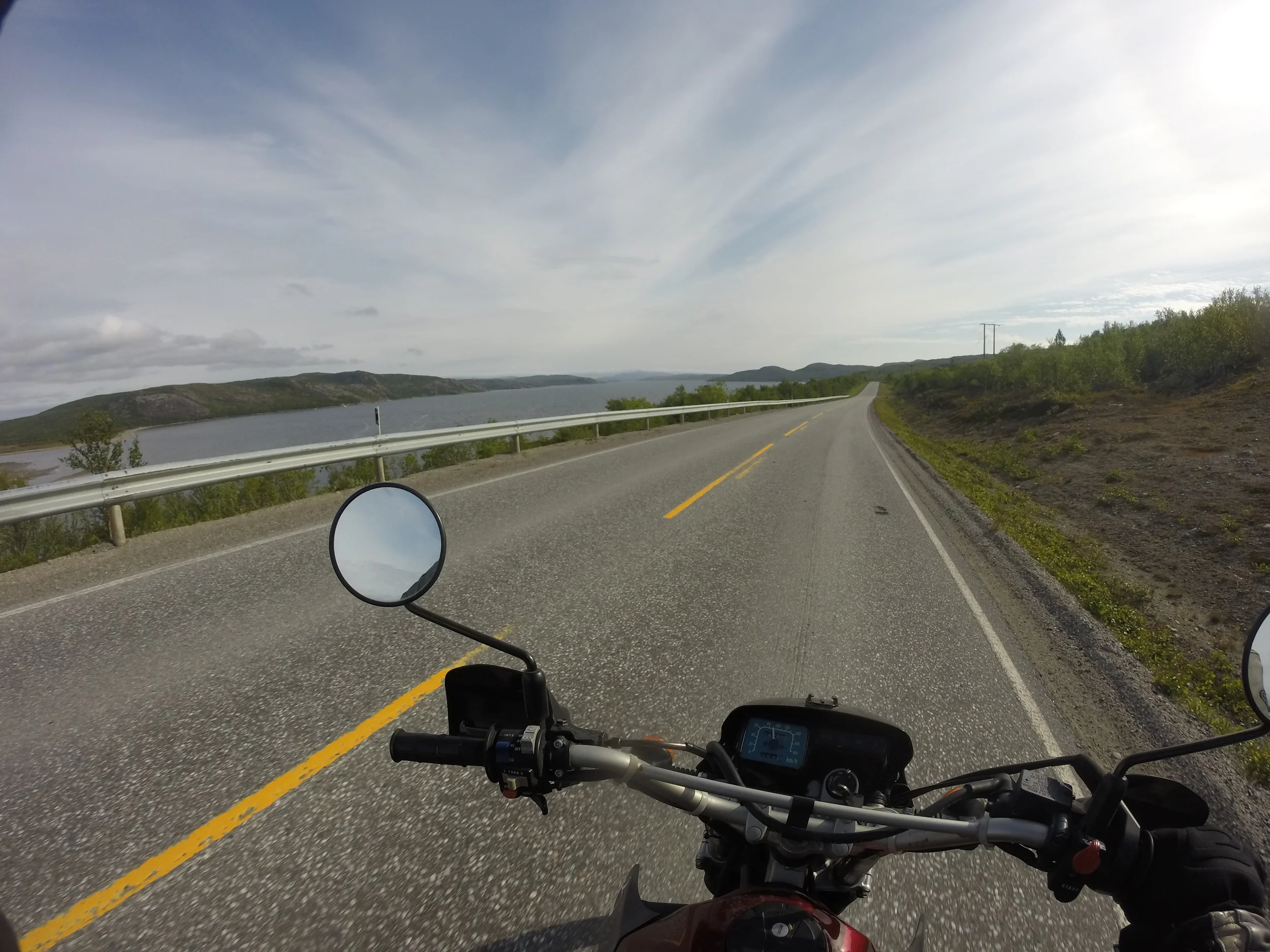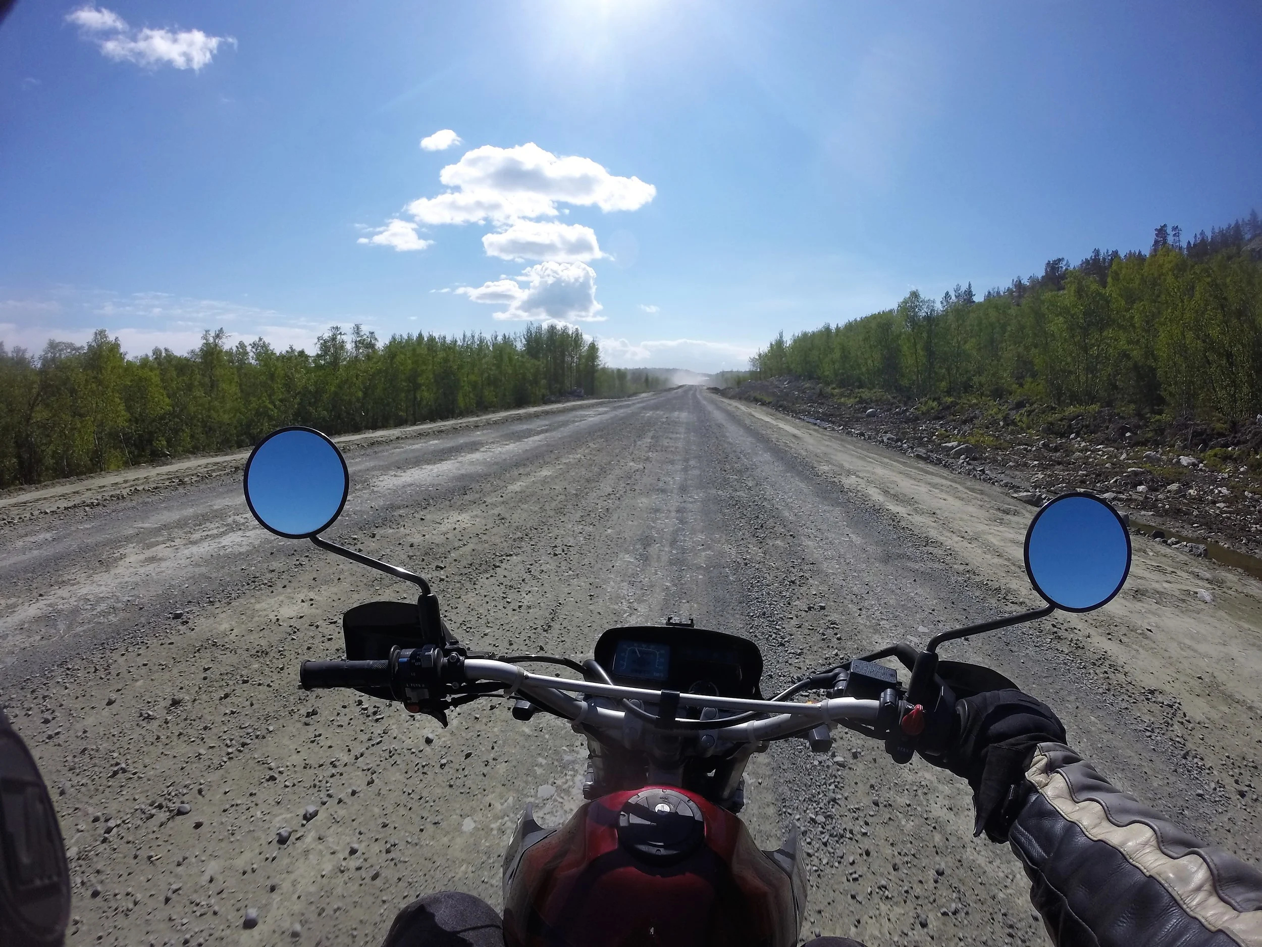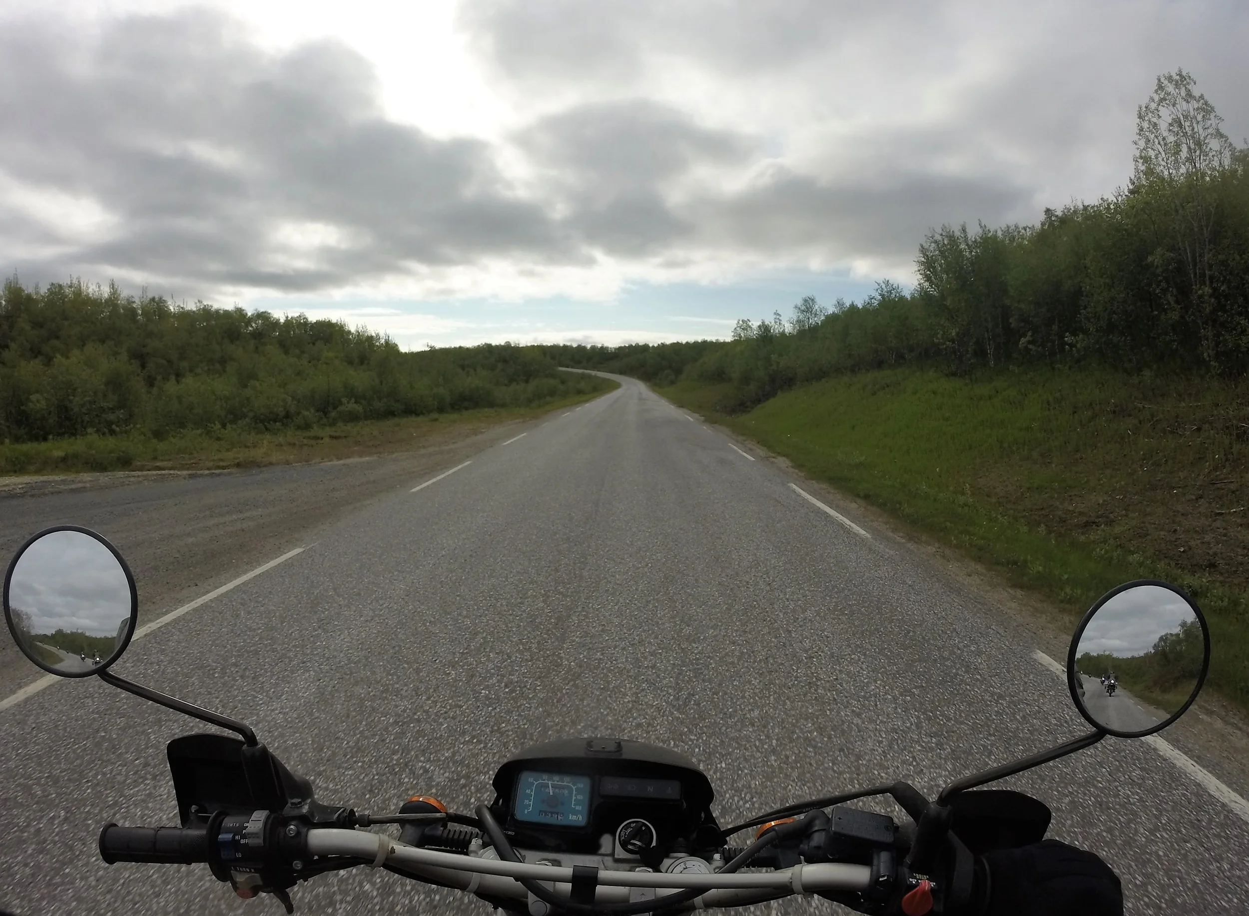 Nikkelista kaksikaistaista, hyvänlaatuista, kaareileva asfalttitietä suoraan Murmanskiin - keli viileni ja huononi nopeasti ja tarkoituksena oli saapua kaupunkiin kuivana... Ei ihan onnistunut, mutta melkein :)
