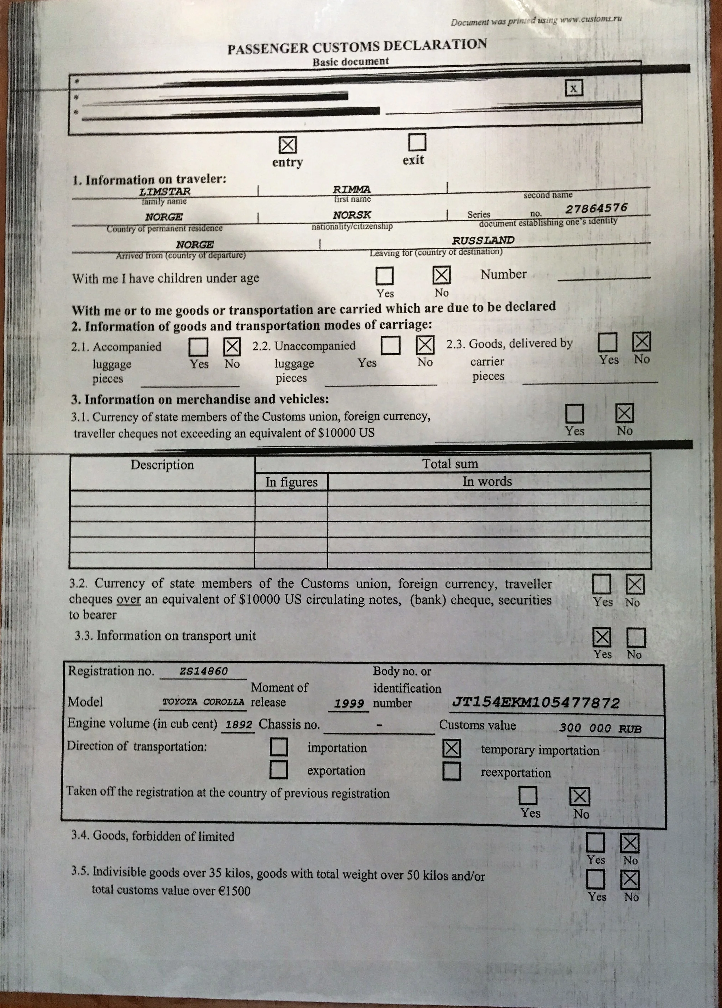 Lappuja täyteltiin, revittiin, täytettiin uudestaan ja allekirjoitettiin siellä sun täällä... Lopulta hikisinä, mutta tyytyväisinä kaikki pääsivät ongelmitta rajan yli!