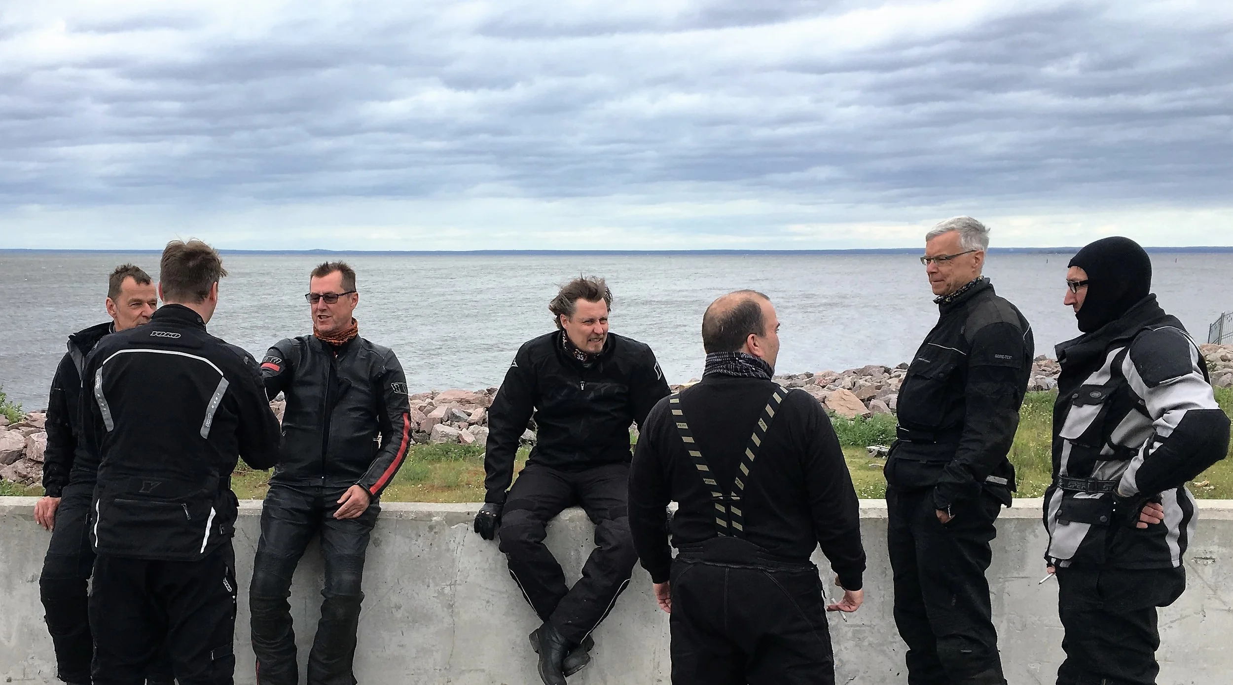 Esittelyssä Mikan tähdittämä ryhmä "MC VR" : Vasemmalta oikealle (kuvat saat suuremmaksi klikkaamalla) - Mika "Pendolino" Pyyppönen ja BMW GS1200, Kirsi ja Heritage Softail, Olli-Pekka ja Triumph Explorer, Jyke ja Suzuki Bandit, Hessu ja Bemari, Jari ja HD, Jake ja Banditti, Juha ja Adventure BMW, Risto ja Yamaha Super Tenere, Markus ja Trumppa Rocket!