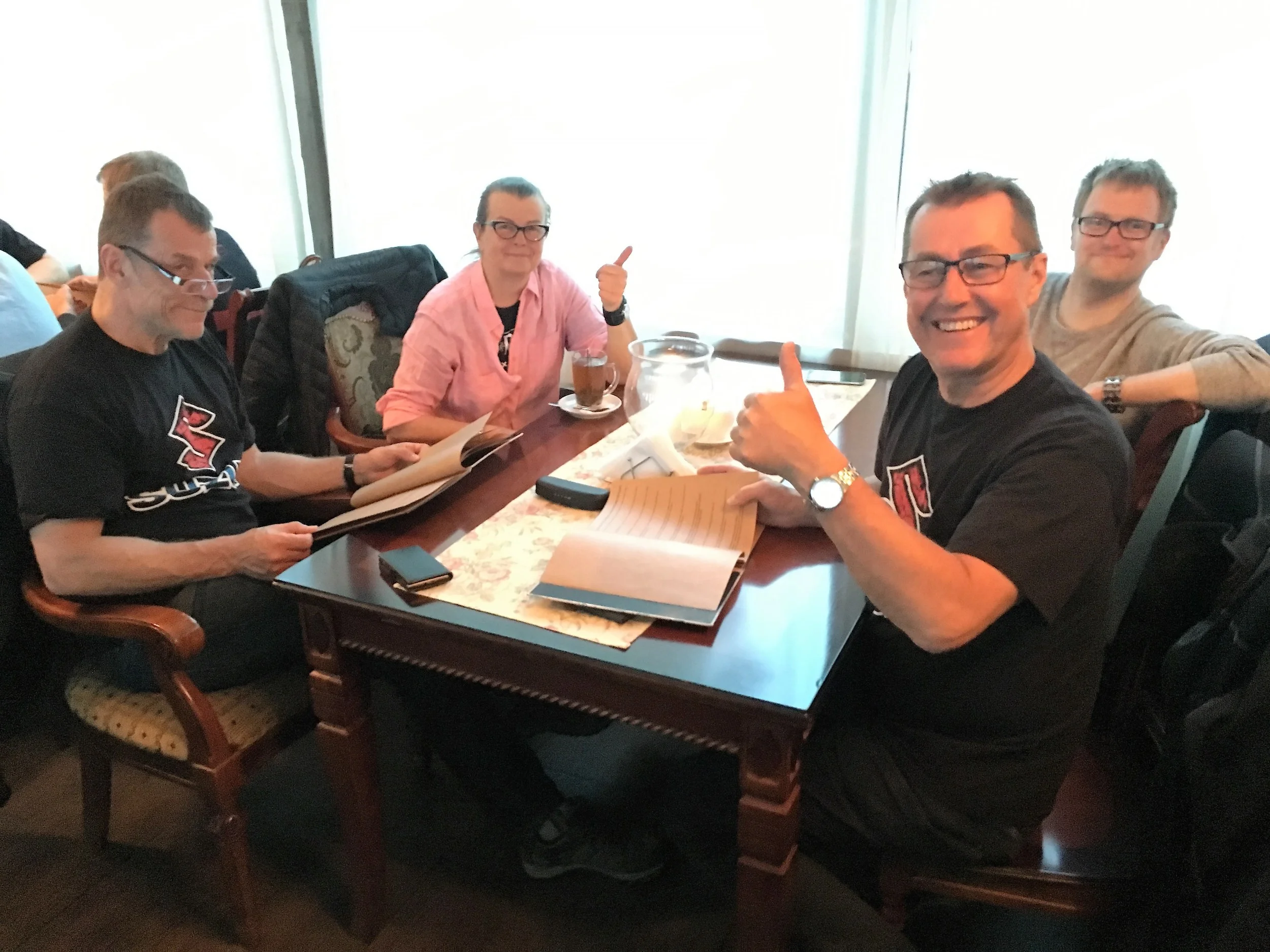 Molemmat ryhmät kasassa, odottamassa laivaannousua...