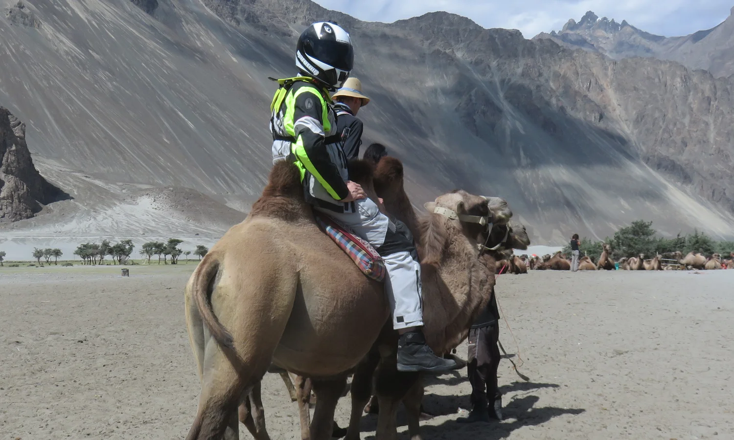 Tänään sama reitti takaisin. Päivä alkaa kuitenkin kamelinratsastuksella. Hundarin viereen on vuosien kuluessa kehittynyt pikku Sahara, jonne saa kamelikyytiä haluamalleen ajalle. Hundarin kameleilla on upea historia, ne ovat muinaisten silkkitiekameleiden jälkeläisiä. Itse jätän kamelikyydin välistä, sisälläni vallitsee avaruudellinen vellova olotila. Harrastin koko viime yön oksentamista. Harvinaisen ärhäkkä vatsatauti iski yöllä, mutta tuntuu onneksi olevan oikenemaan päin. Onnistuin nappaamaan jonkun henkilökohtaisen superpöpön jostakin.