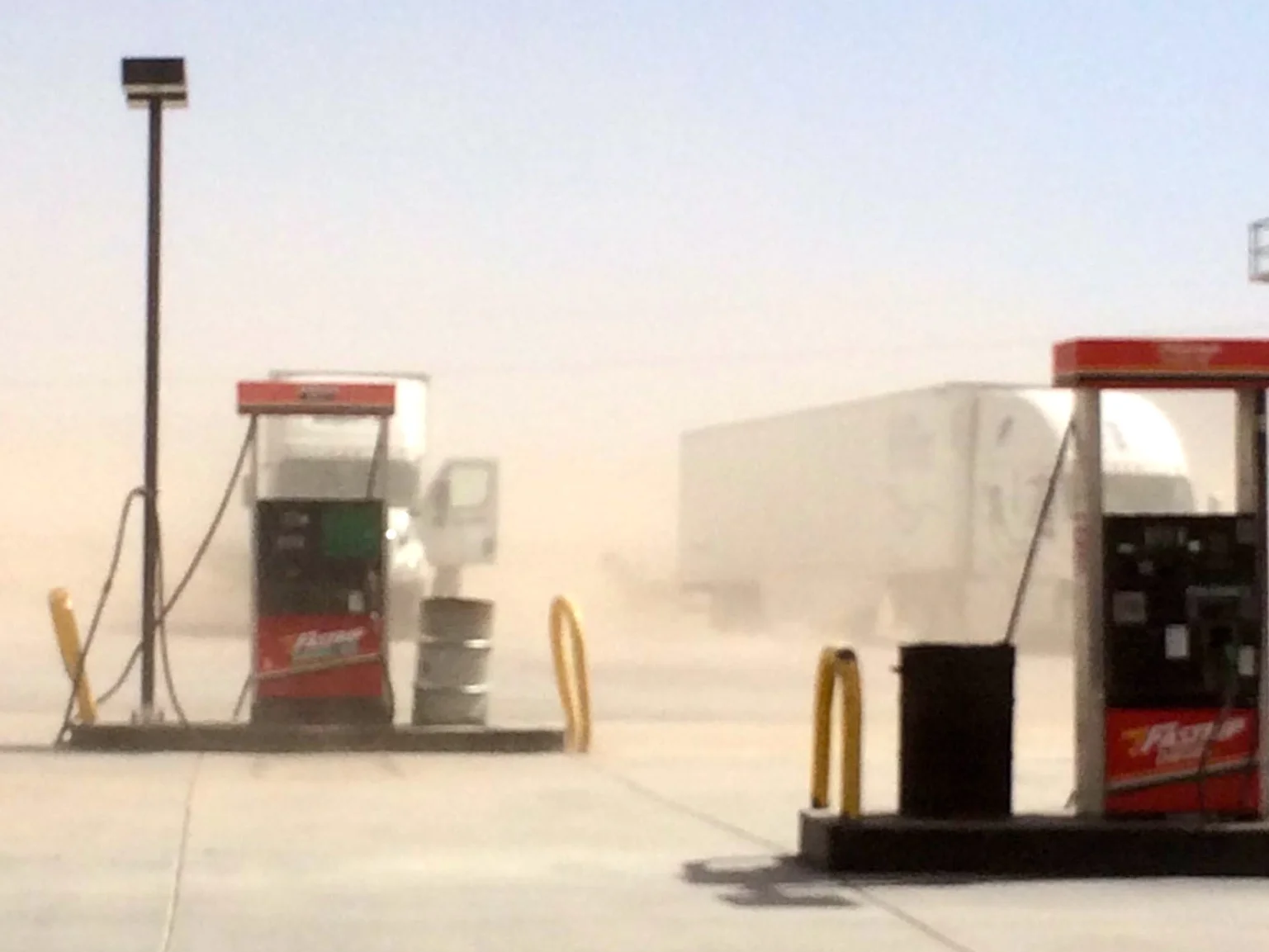 Amargosa Valley bensiksellä on pölyä ilmassa.