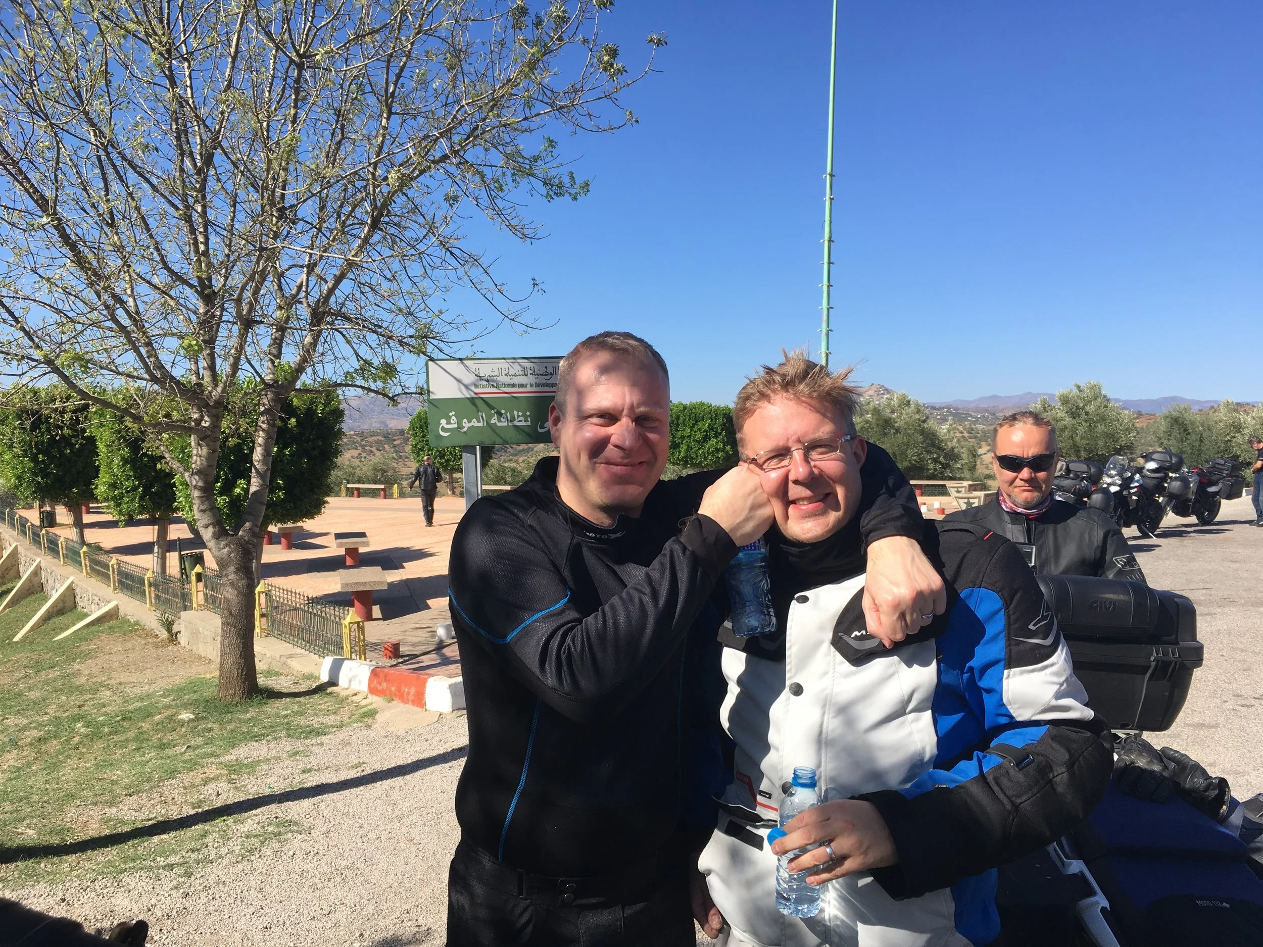 Ensimmäisenä hotelin päästyään kypäräkaljoille - pakko huuhdella Saharan hiekat pois suusta :)