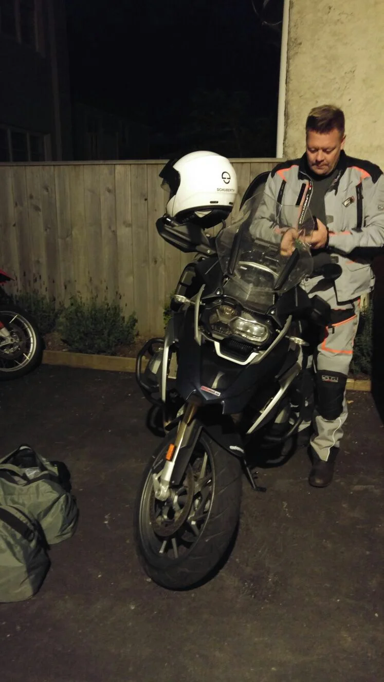 Lauttarannasta löytyy muitakin motoristeja - ja päiväkin alkaa pikkuhiljaa valkenemaan.