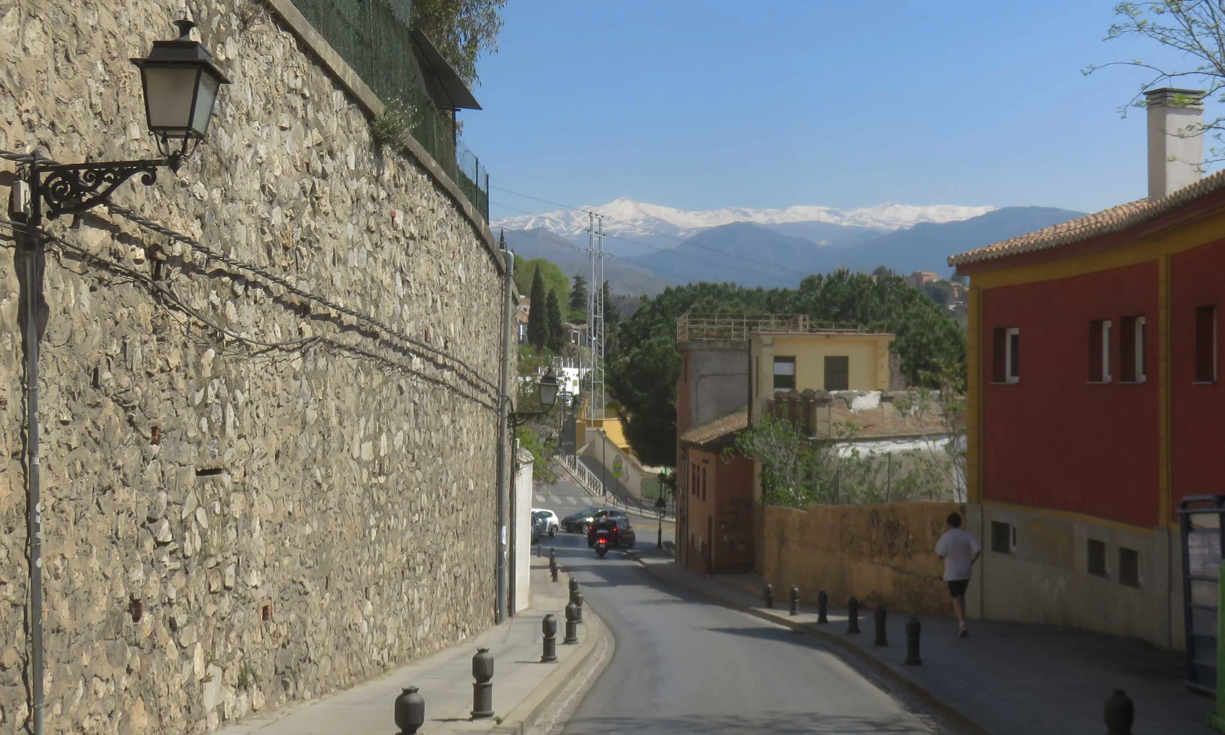 Granadan vanhan kaupungin kadut ovat kivoja... taustalla Sierra Nevada!
