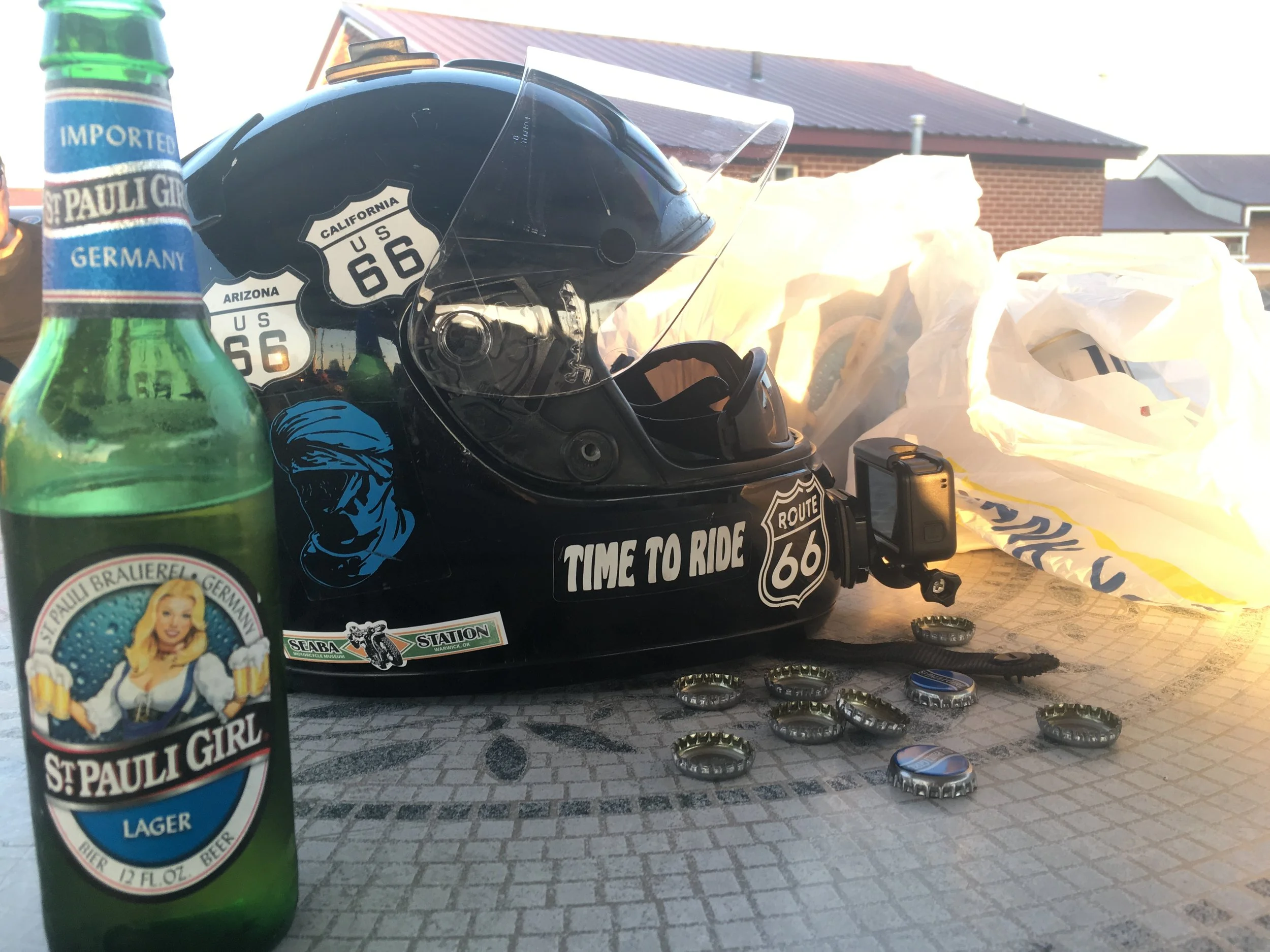 Pitkän ajopäivän jälkeen kukaan ei jaksanut mennä minnekään kauas, vaan tilattiin kotiinkuljetuksena pitsat ja lähimmältä bensa-asemalta haettiin muutamat kylmät olueet!