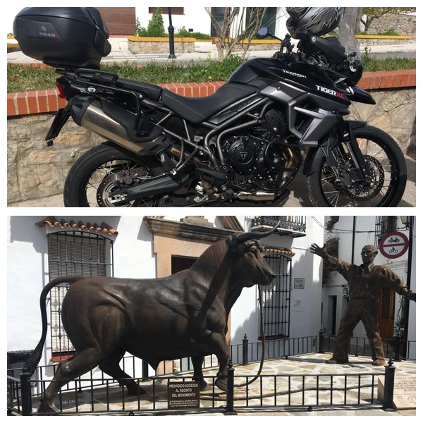 Ensimmäinen tauko ja käymme puistonvartijan patsasta moikkaamaan ja josta jatkamme edelleen Rondan suuntaan. Rondaan emme tänään poikkea, vaan ajamme suoraan Zaharaan.