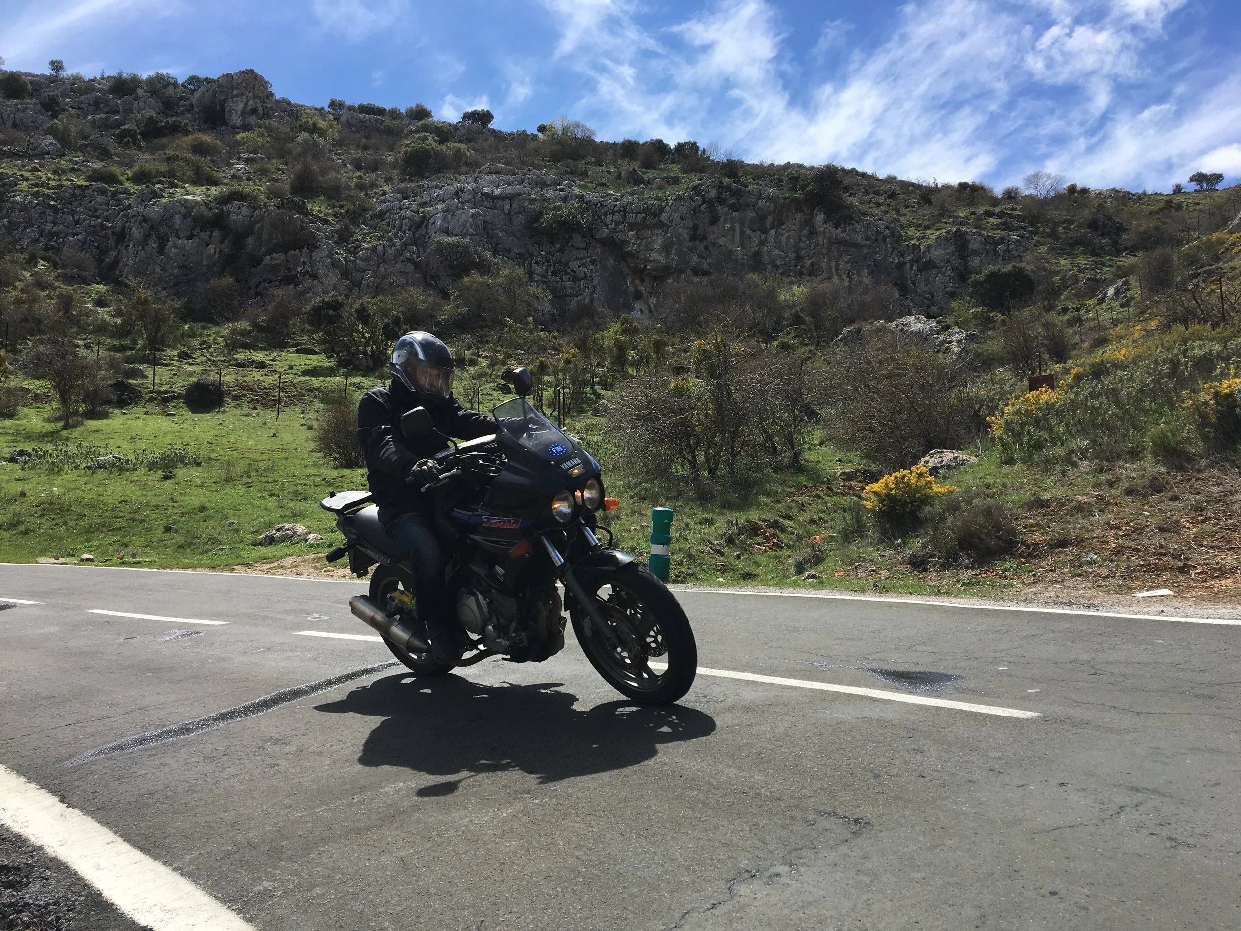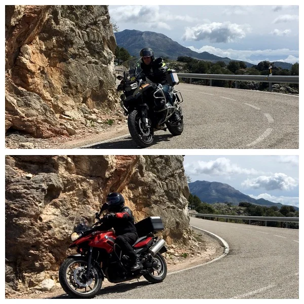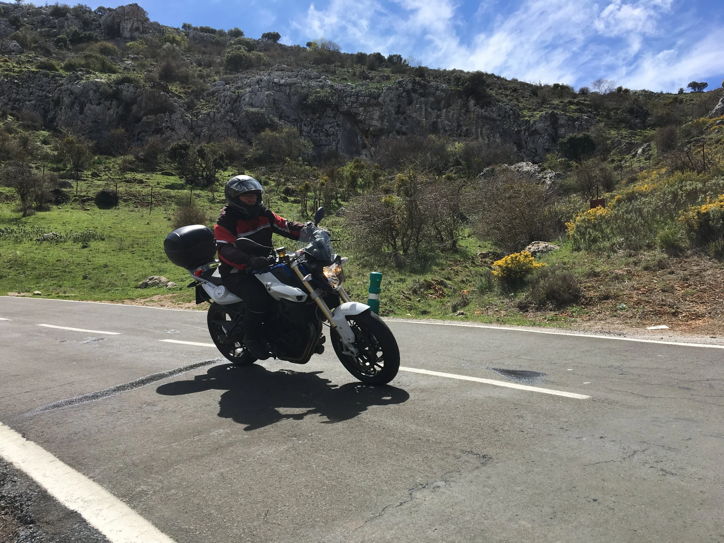 Jälleen ripeä siirtyminen pikatietä pitkin ja sopivasta rampista ulos josta pääsee - varmaankin jo arvaat millaisille teille? Nyt on uutta latua ja kyliä samalla kun kivutaan vuorille Välimeren jäädessä kytkinkahvan puolelle. Ajamme nyt kohti Rondan kaupunkia, joka ensimmäisenä ajopäivänä sivuutettiin sovitusti. Vuorilla ilma sen kun vaan kirkastui ja aloituspäivänä ajettu tie tarjosikin mielikuvan sopivan valokuvauksellisista mutkista, joten nyt päästään lunastamaan myös eilisiä valokuvauslupauksia.