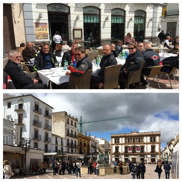Pian oltiinkin jo Rondassa jossa söimme lounaat tyylikkäästi Plaza de Socorrolla arvaillen lähestyvien sadepilvien suuntaa. Ruokailun jälkeen tarkastimme uuden sillan, Puente Nuovon, joka nyt ei aivan upouudeksi osoittautunutkaan. Tuskin tänä päivänä kukaan näkisi moista vaivaa yhden sillan rakentamisen takia, näky on varsin puhutteleva. Silta on kuulemma menossa käyttökieltoon tai saamassa ainakin käyttörajoituksia espanjalaisen insinööritaidon puutteiden takia, sillä 1700 luvun insinöörit eivät olleet osanneet laskea liikennemäärien kasvua oikein ja nyt silta alkaa väsymään.
