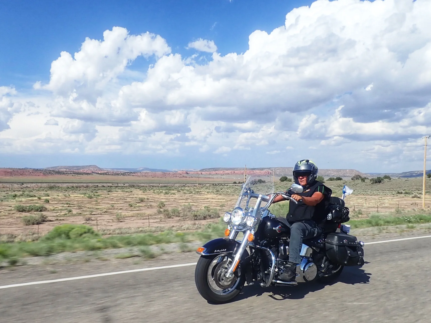 Vapaapäivän jälkeen oli taas kiva hypätä Harrikan selkään ja painaa menemään. Keli mitä mainioin ja edessä Los Alamoksen upea tie, joka mutkittelee mukavasti hulpeissa maisemissa.