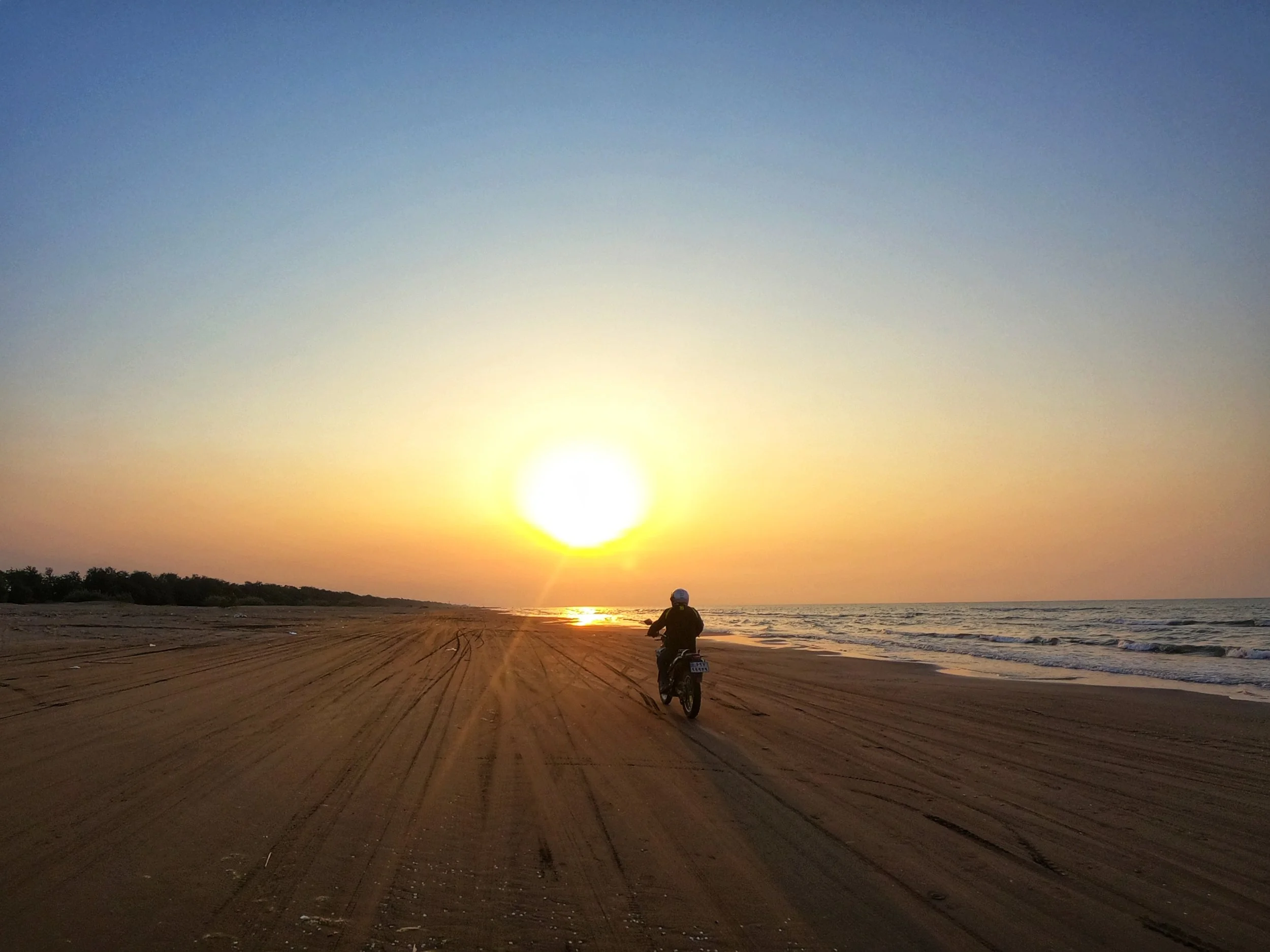 Rannalla oli muutamia paikallisia, mutta suurimmaksi osaksi melko autiota ja kymmeniä kilometriä hyvin tampattua rantaviivaa. Kyllähän sitä ajeltiin sitten aina auringonlaskun saakka edes takaisin :)