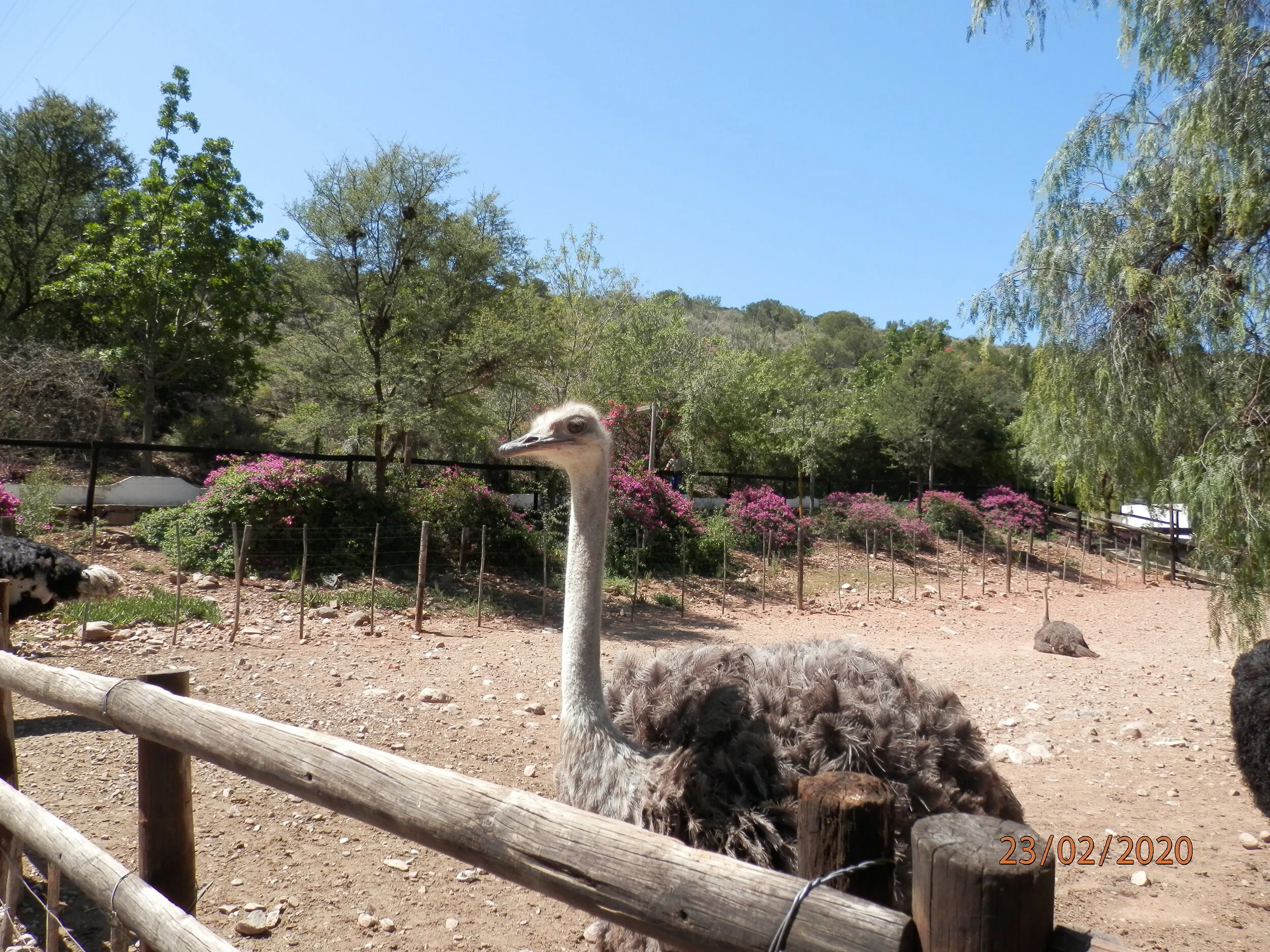 Jakauduimme jälleen kahteen ryhmään. Nopea ryhmä lähti Jyrkin johdolla nauttimaan upeista merenrannan kupeessa kulkevista mutkateistä ja minun ryhmä ajeli hiukan varovaisemmin perässä. Sovimme tapaamispaikaksi Oudstshoor kaupungin jälkeen olevan Cango Ostrich Farmin. Ohjelmassa luki, että tänään tutustumme strutsin elämään. Yllätys oli, että meidän nopea ryhmä tuli sovitulle kohtauspaikalle puolitoista tuntia myöhemmin. Olivat ottaneet pienen volttilähdön ilmeisesti.