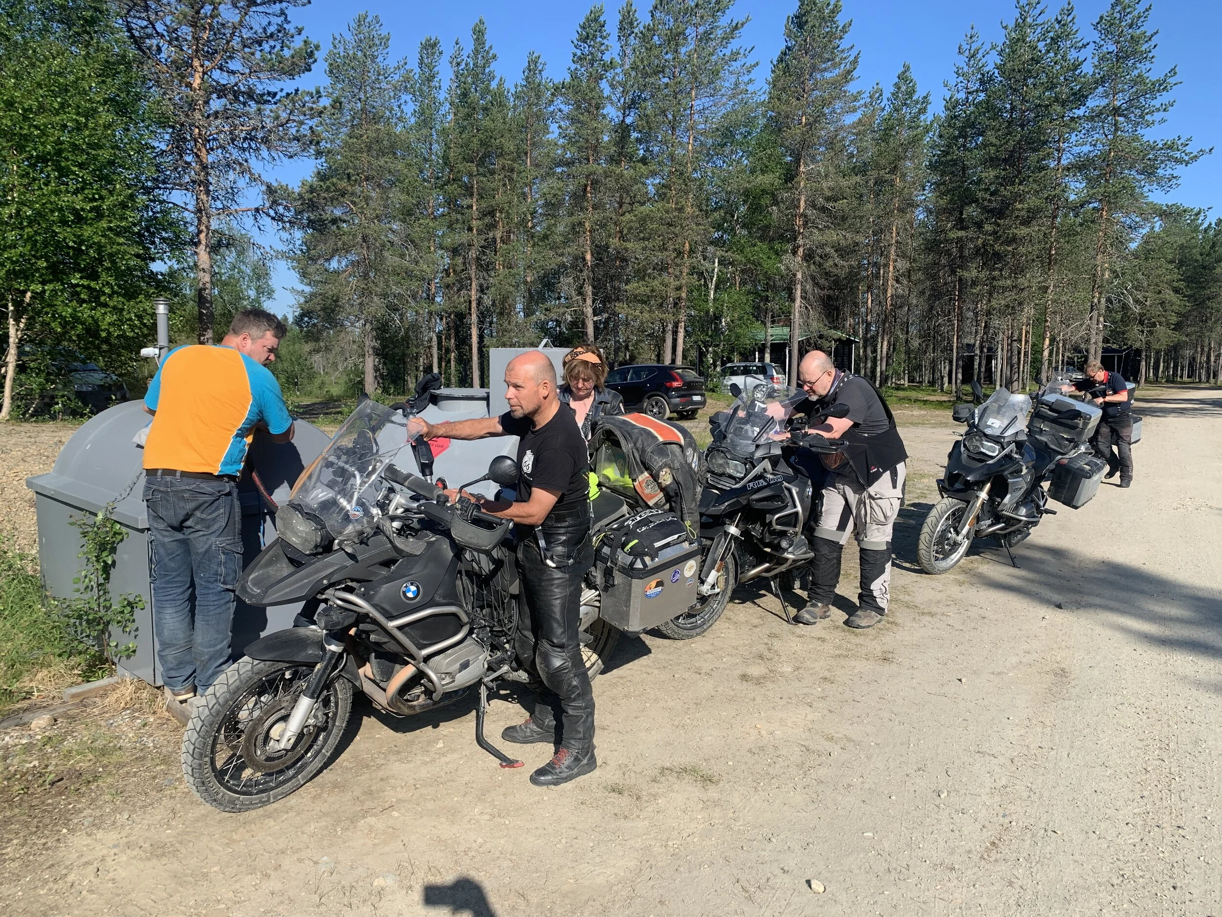 Tankki täyteen Tulppion suurhuoltamolla. Juhalla on leder hosenit jalassa koska on baijerilainen pyöräkin