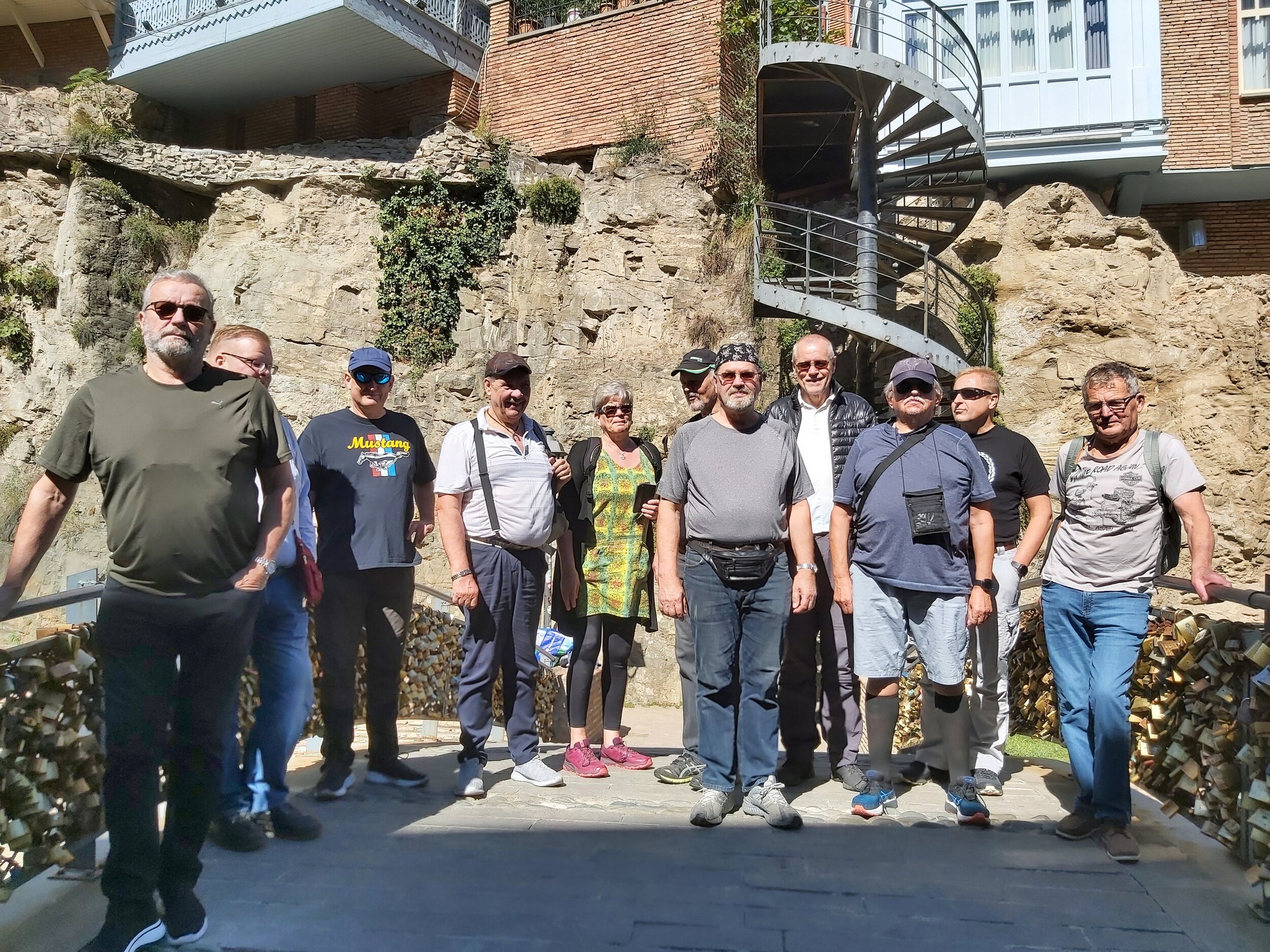 Putoukselta kierreportaat ylös, josta ”oikaisu” ensimmäiselle sillalle ja sitten hienon Tbilisin keskus Moskeian kulmasta jyrkän mäen kautta Nariqalan linnoituksen raunioille. Nämä rauniot ovat Tbilisin kaupunki kuvan tunnetuin silhuetti. Raunioiden vieressä sijaitsee komea ST. Nicholaksen kirkko. Kirkolta jatkoimme jyrkkiä portaita äiti Georgia patsaalle. Tämä noin 20 metriä korkea patsas vartio kaupunkia toisessa kädessään viinikulho ystäville ja toisessa miekka vihollisille. Patsaan kuvaaminen etupuolelta oli mahdotonta, joten kuvakulma on tällä kertaa hieman erikoinen.
