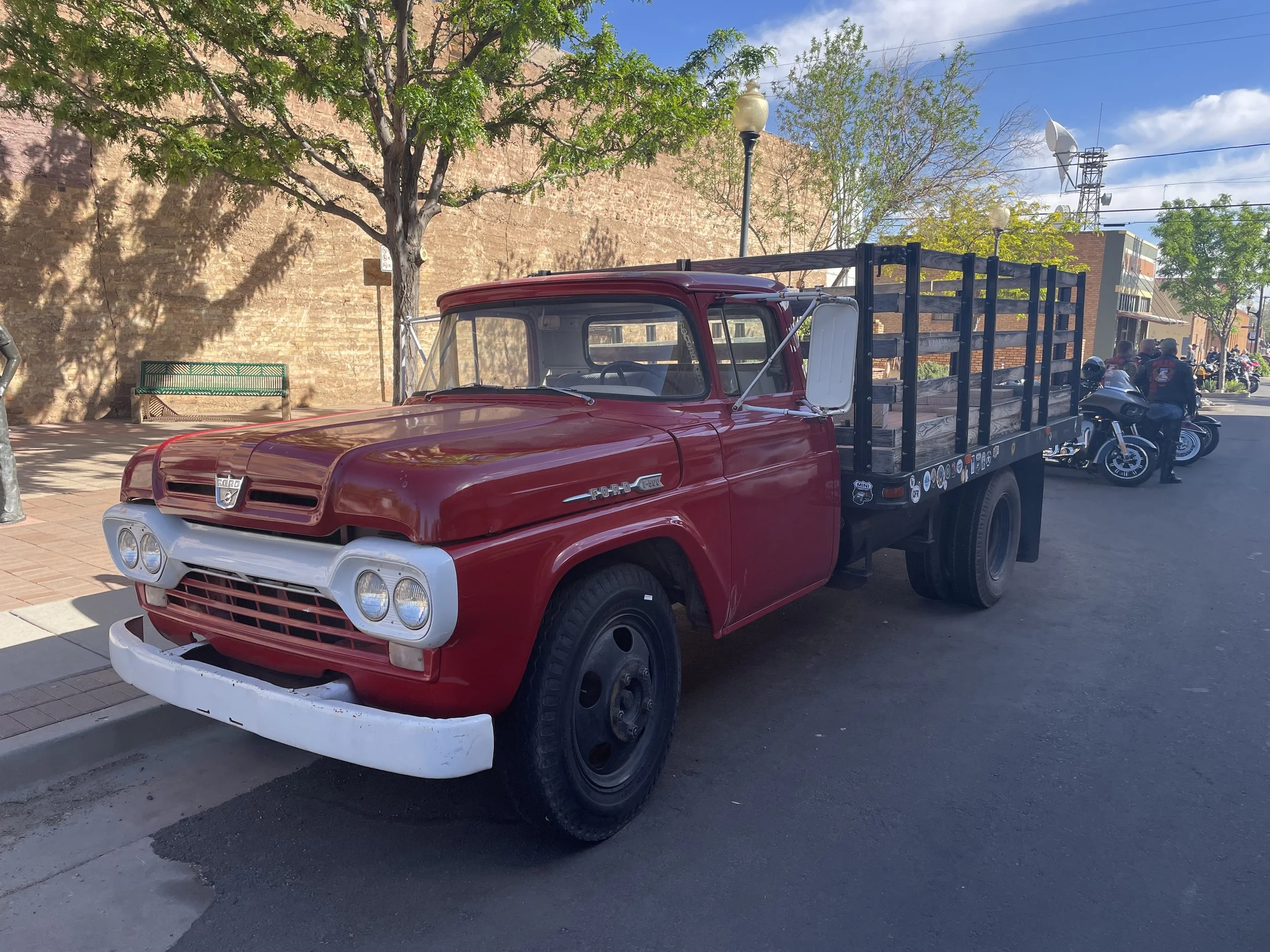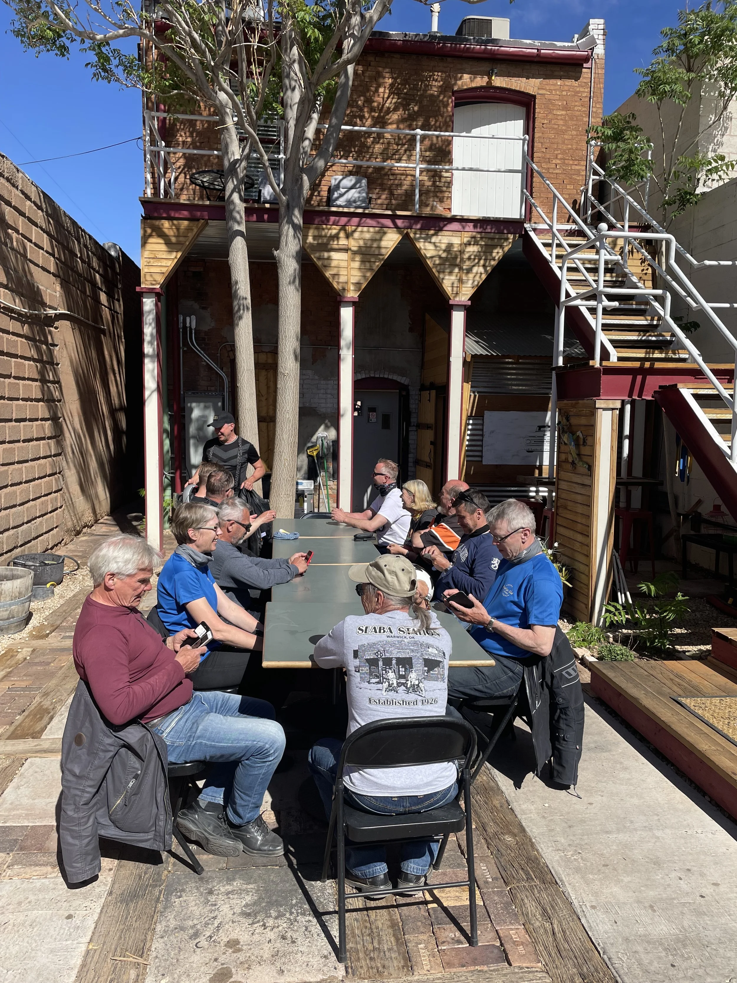 Tarjoilija kertoi, että uskomuksen mukaan pussi jossa on sadevettä ja muutama kolikko, niin tuo business onnea. No ainakin se toi 14 nälkäistä bikeria Suomesta, eli toimii.