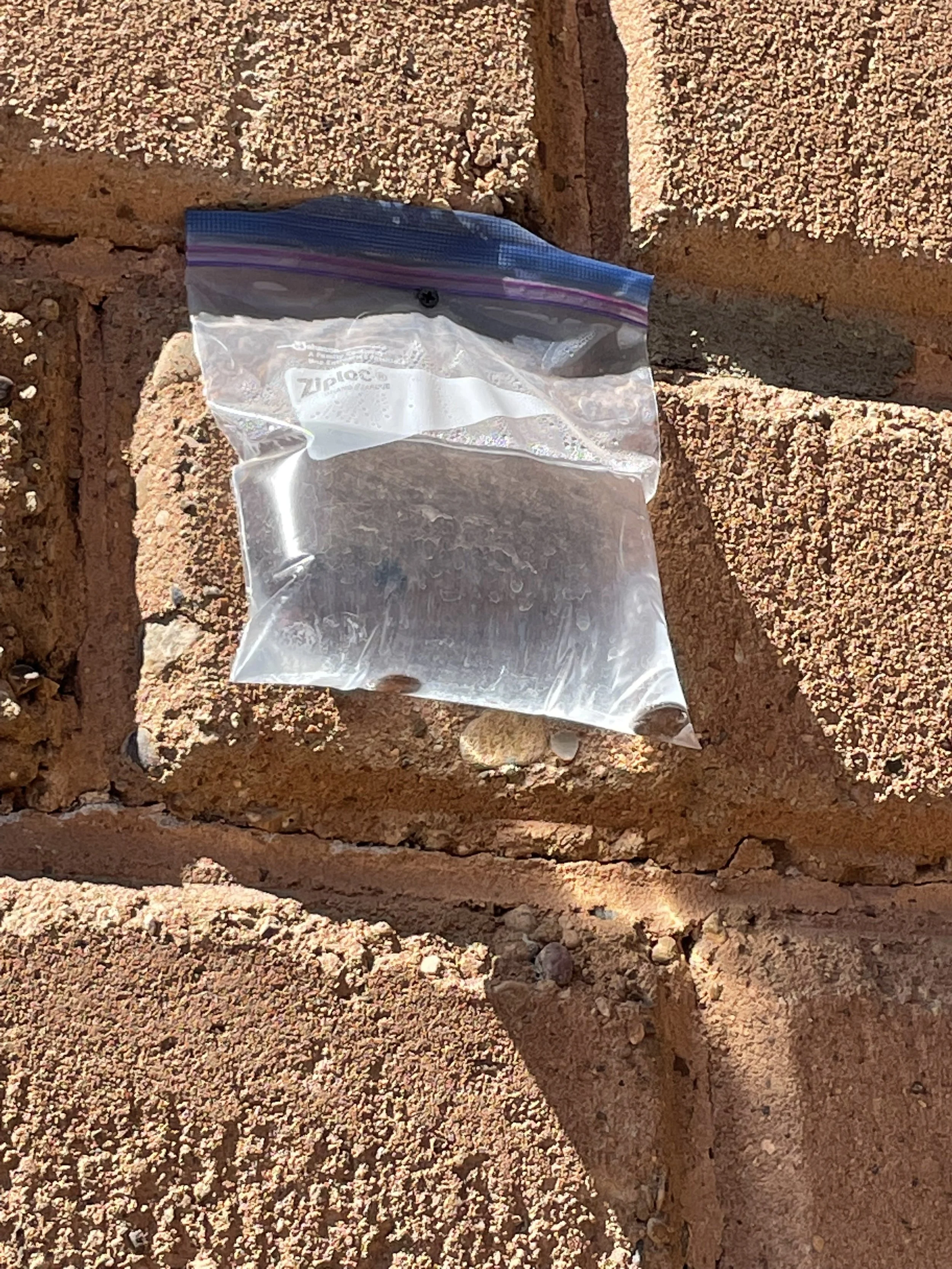Minigrip pussi jossa vettä ja muutama kolikko naulattuna kiviseinään. Olihan se kysyttävä, että mitä hittoa.