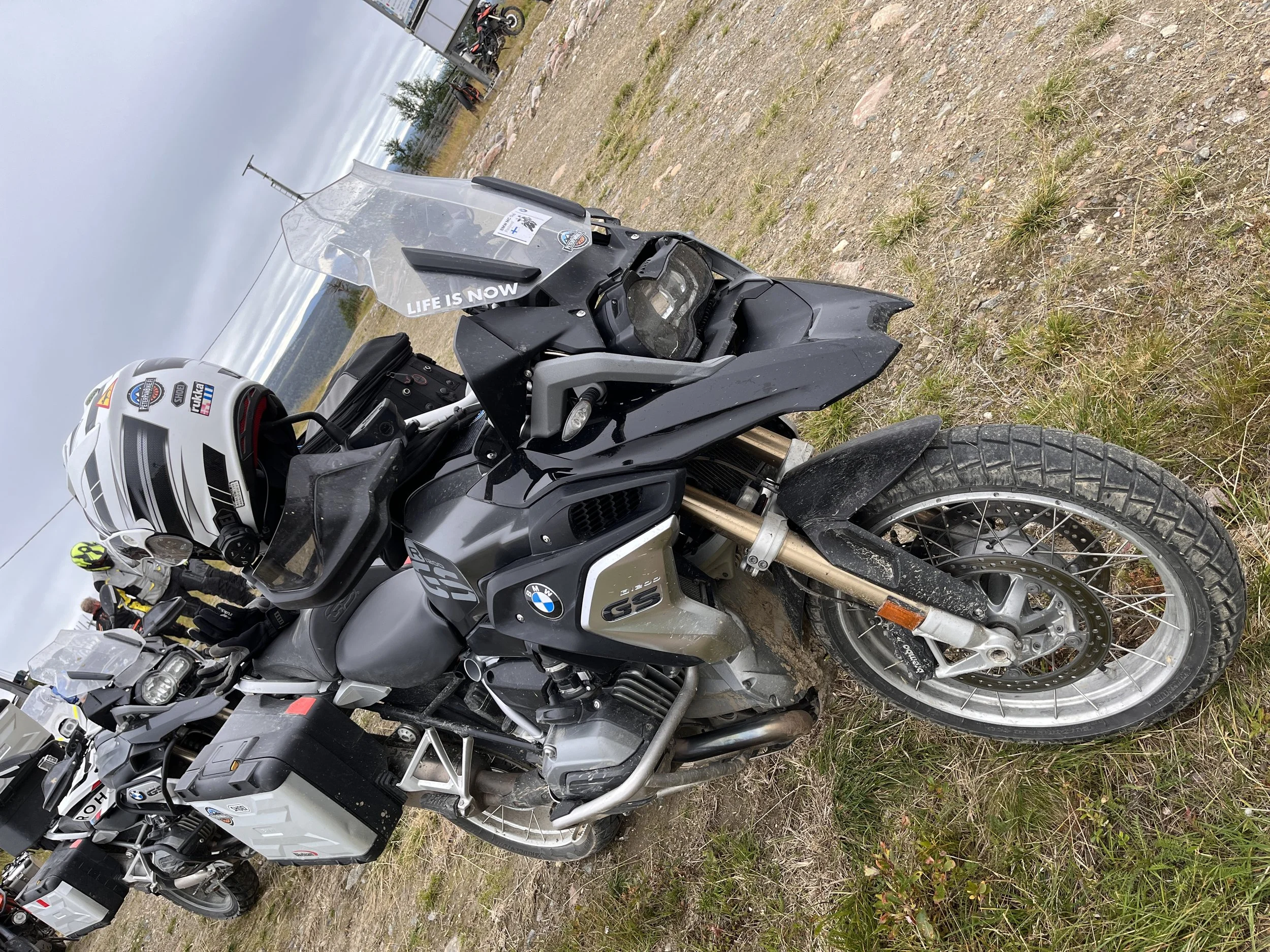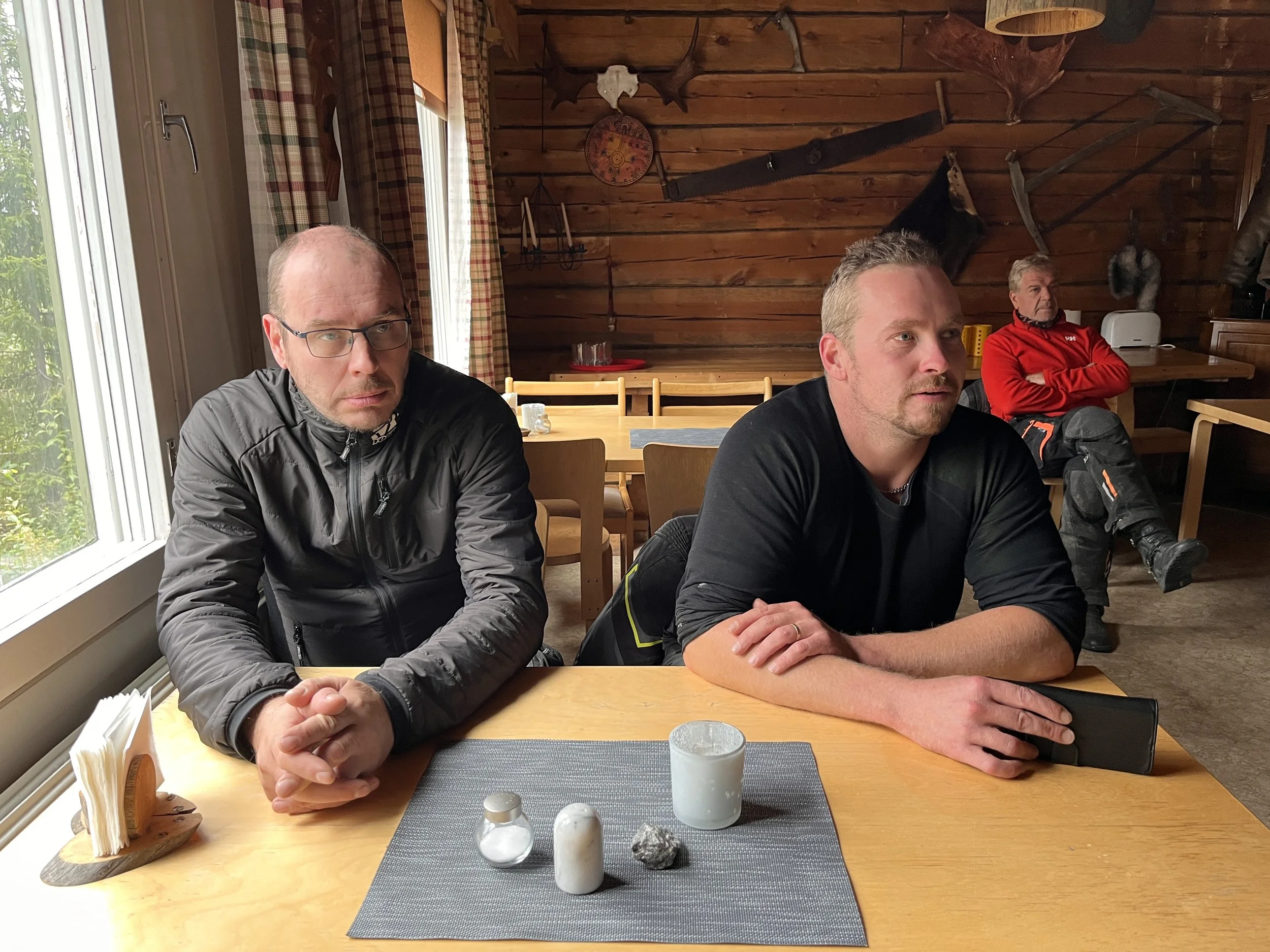 Hieno ja aurinkoinen ajopäivä oli jälleen alkamassa. Nyt nopsaan aamupalalle ja sitten kohti pohjoisen sorateitä. Sovittu lähtö klo 8.30 viivästyi hieman, koska juuri ennen prime timeä alkoikin sataa ja päätimme hieman epäuskoisina pukea sadeasut päälle. Se oli kuitenkin oikea valinta, sillä tämä oli matkan ainoa päivä, jolloin sadeasuja tarvittiin.
