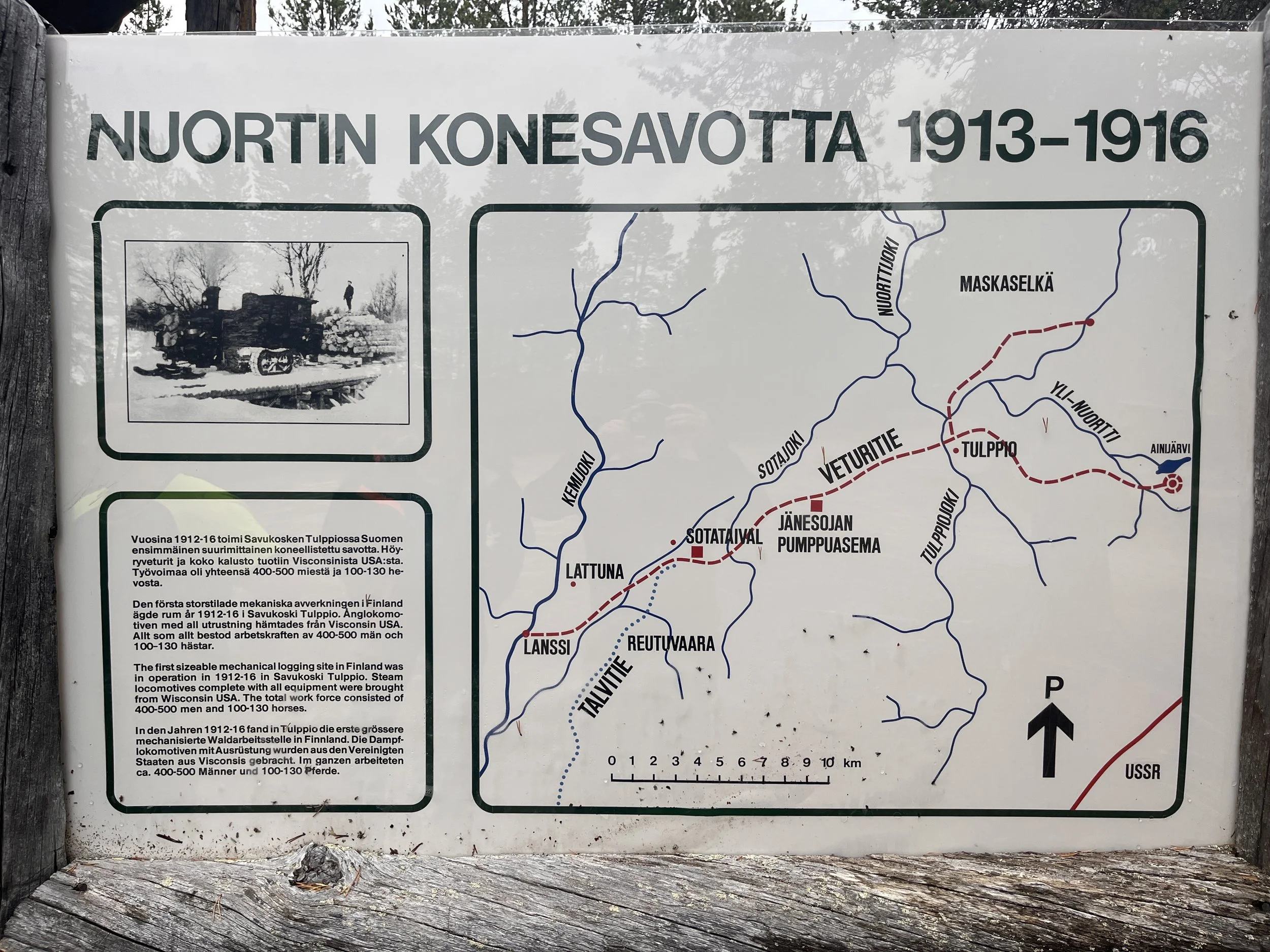 Sallasta poikkesimme sivutielle ja sieltä edelleen soratielle, joka tuntui varsin mukavalta. Tuntsan pubin jälkeen viralliset kartat ilmoittivat pian tien päättyvän ja myöhemmin kokonaan loppuvan. Me emme välittäneet turhasta lisä-disinformaatiosta niin kauan, kun allamme pölisi reilu lappilainen soratie, joka vei meidät tuhansien mutkien ja mäkien jälkeen Tulppion erämaahan.
