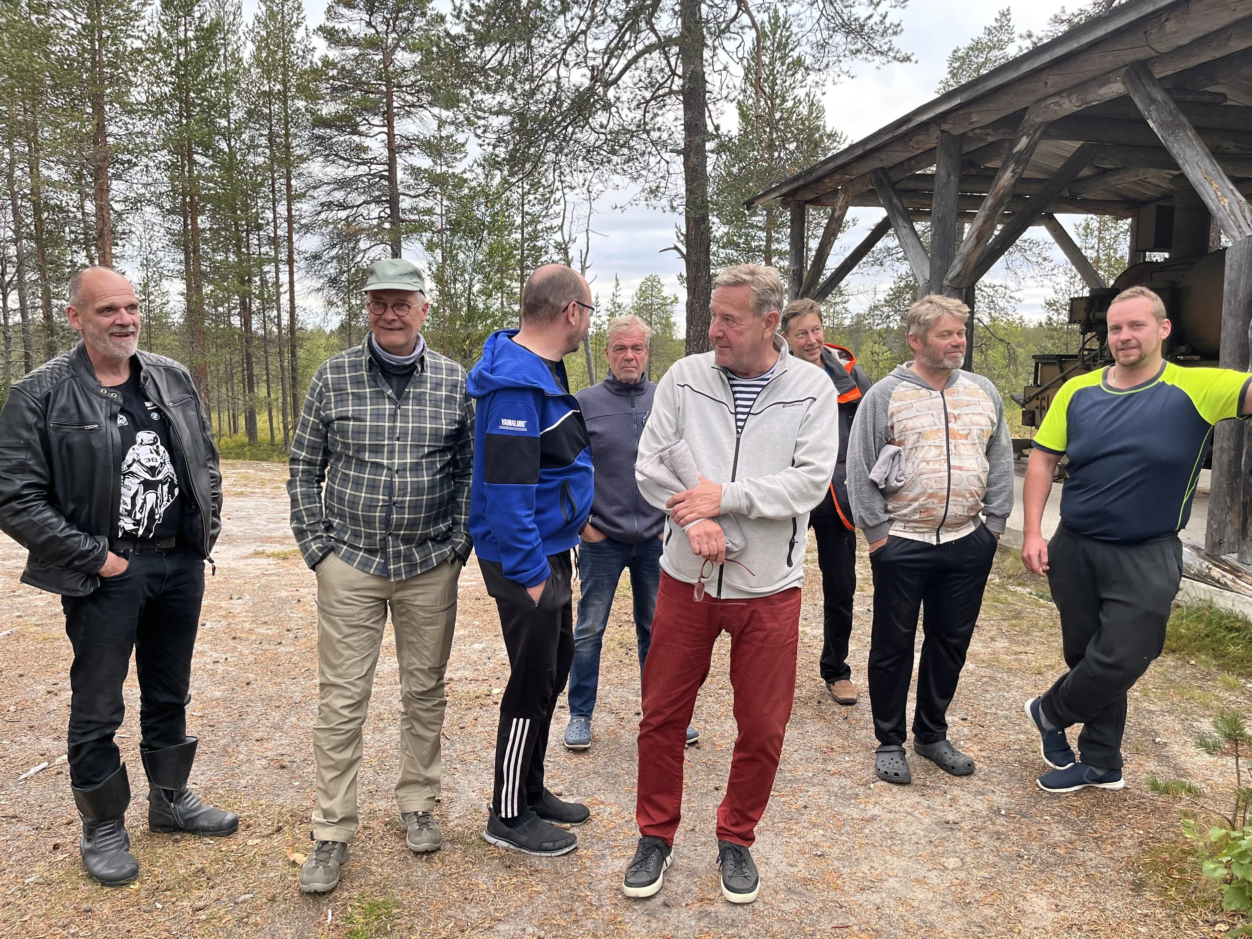 Samperin veturi oli aikansa ja savotan superkone jossa tehoa oli vähemmän kun meidän tämän päivän moottoripyörissämme. Etualalla Sami, Mika, Harri, Matti, Joose, Sami, Jyrki ja Japi.