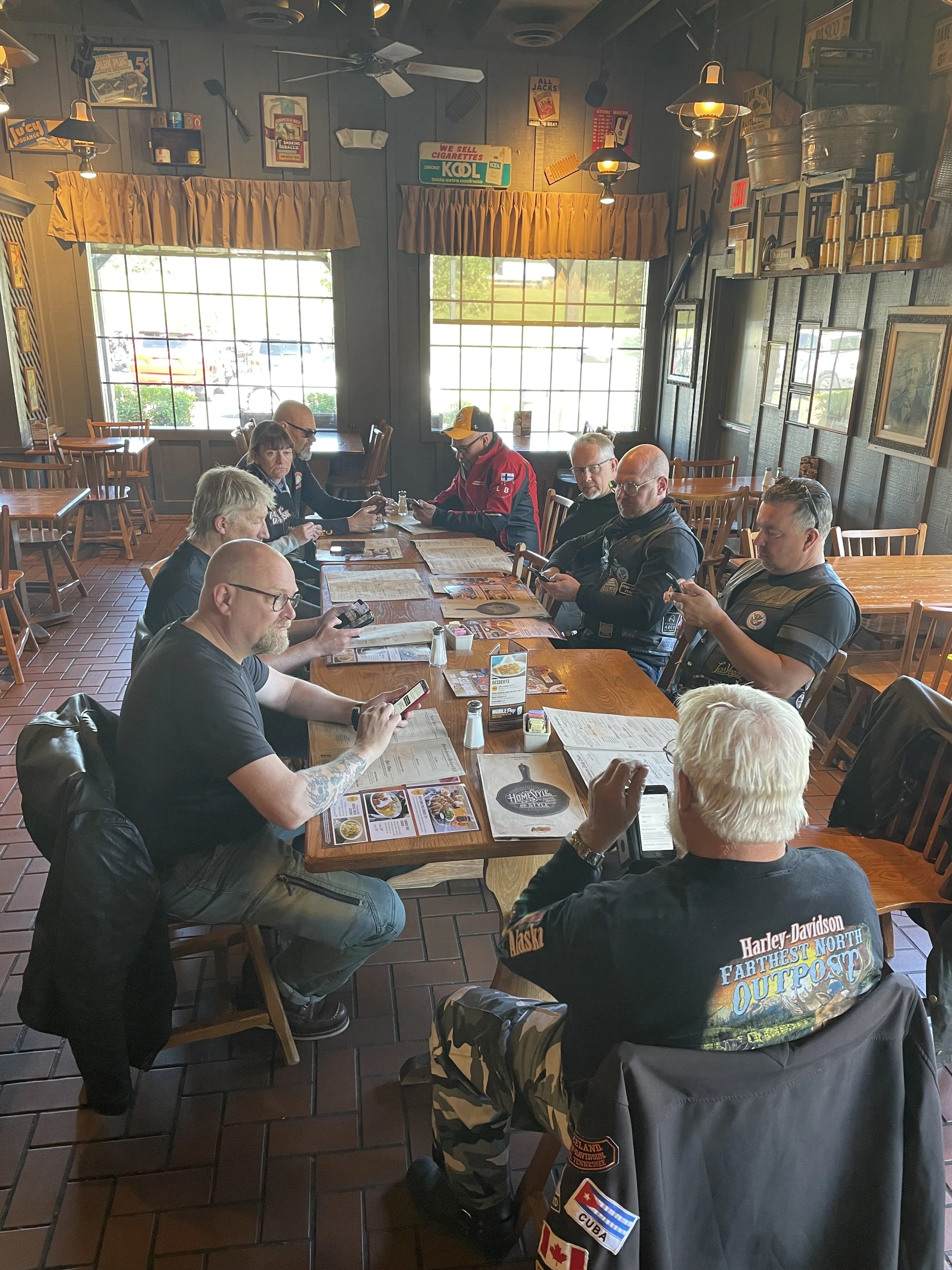 Kansikuvana ehkä syvän etelän yleisin liikennemerkki. Ei ehkä ensimmäisenä tule mieleen, että täällä varoitetaan jäästä silloilla, mutta näitä oli paljon. Tosin aamu Claksdalessa oli hieman viileä. Joten se toi uskottavuutta noihin varoituksiin. No meidän kohdalle ei onneksi osunut jäisiä siltoja eikä teitä. Pitkä ajopäivä edessä ja startattiin klo 7. Pikkutietä eteenpäin ja The Harhaanjohtaja löysi jopa soratietä parin kilometrin verran, ei ollut tarkoitus… Ajettiin pari tuntia ja aamiaiselle.