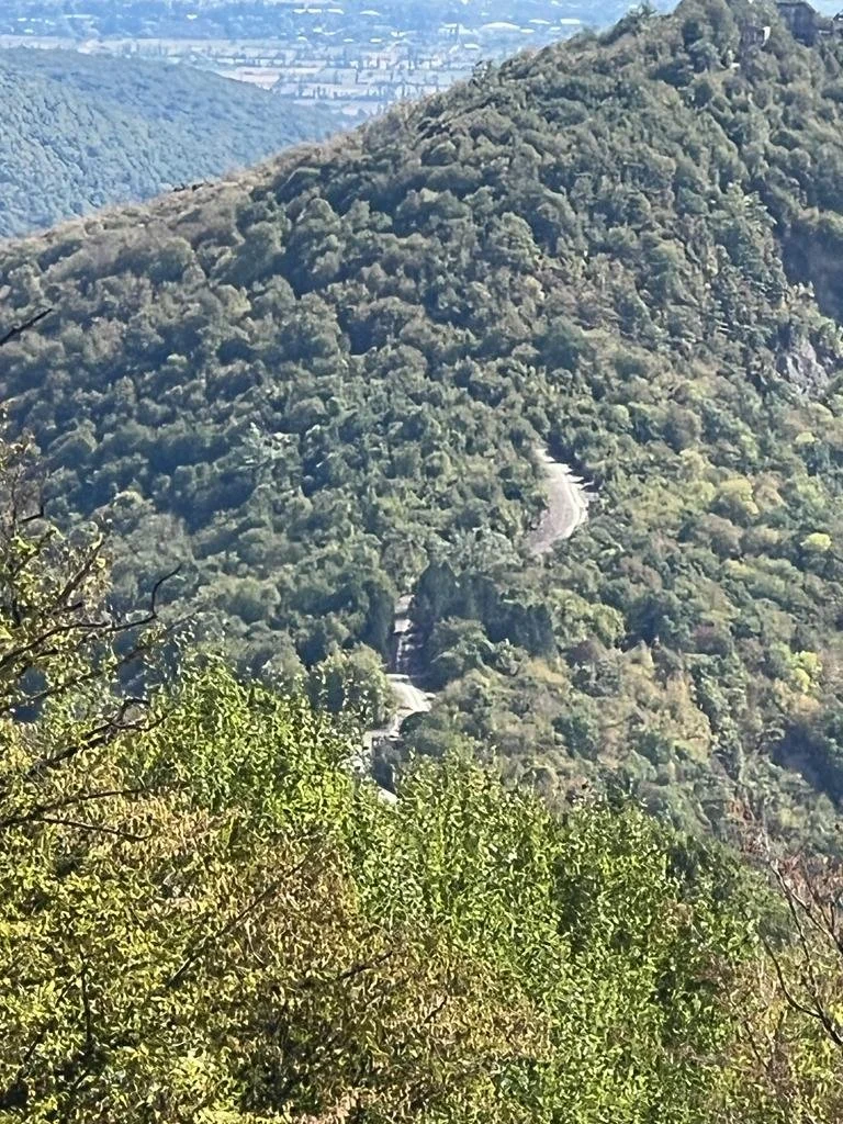 Taitavat tietää täällä Georgiassa, että me suomalaiset olemme kahvin suurkuluttajia. Pöytään oli nostettu kymmenen termospulloa kahvia. Koska meitä on juuri se määrää, niin tänä aamuna ei kahvi loppunu. Kun oli tankattu ihmiset monipuolisella aamupalalla, niin ajoimme huoltoasemalle, jossa Gulf palvelumestari tankkasi meidän pyörät. Keulat kohti pohjoista Georgian sotilastietä pitkin,joka on yhdistänyt Venäjän ja Georgian. Tämä vuoristotie on nykyään vähän liikennöity huonokuntoinen tieosuus, koska rautatie on tärkein yhteys noiden kahden maan välillä.