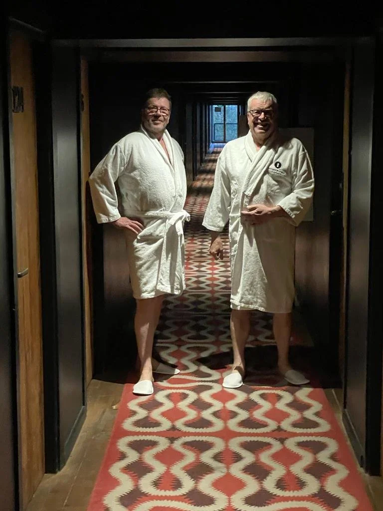 Iltapäivällä lounaan jälkeen jakauduimme kahteen ryhmään. Toinen ryhmä ajoi mutkaisia vuoristoteitä suoraan hotellille ja toinen ryhmä teki sorateitä pitkin puolentoista tunnin koukkauksen hotellille. Tavarat huoneeseen ja alakerran kylpylään. Siellä meitä odotti Harvian valmistama sauna. Vielä illallinen hotellin ravintolassa ja ei muuta kuin pää tyynyyn. Huomenna jatketaan.
