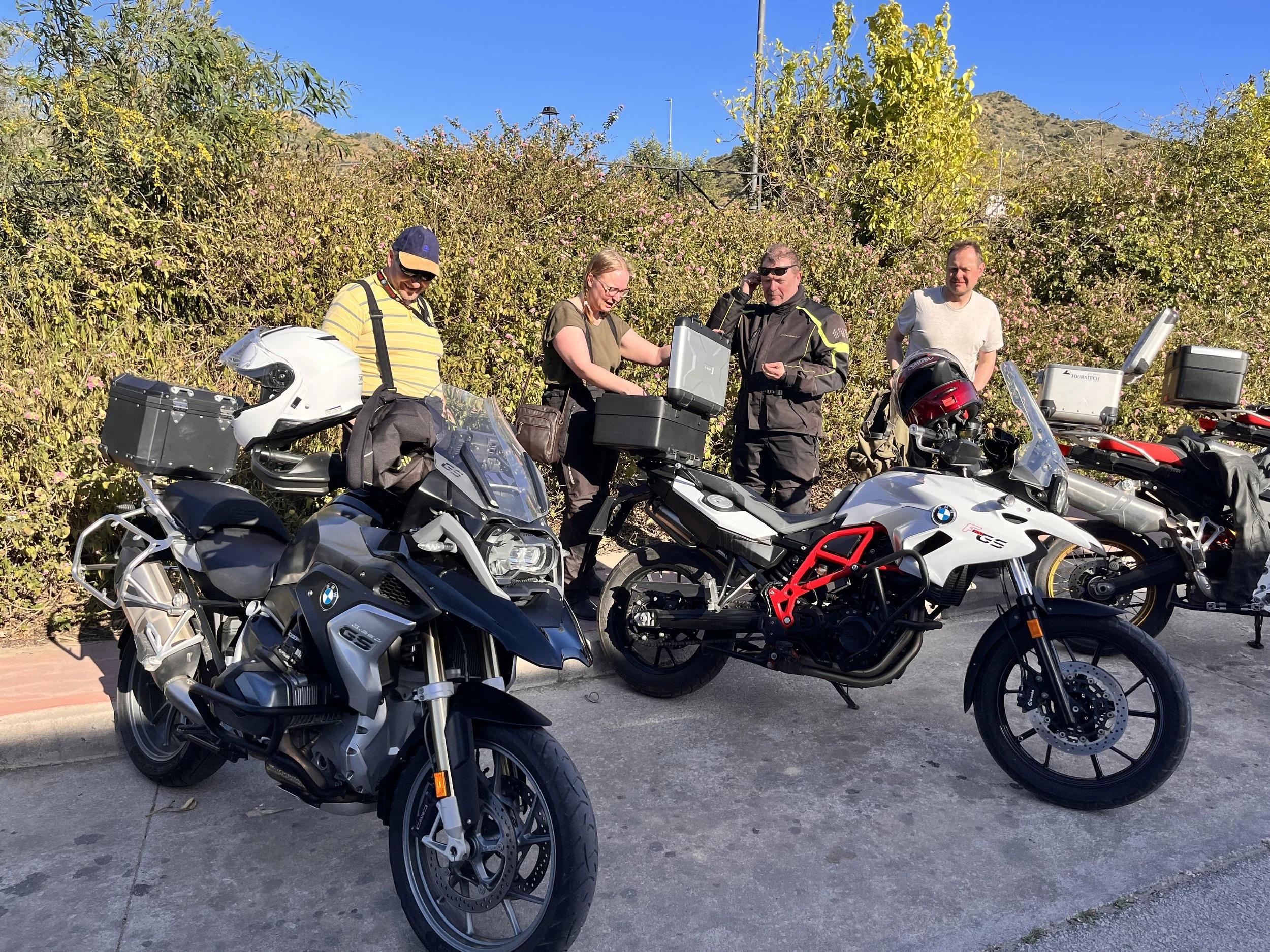 Tähän aamupäivän osuuteenn aikaa saatiin kulumaan peräti parisen tuntia, sillä aamuruuhkassa leikittiin hajoita ja hallitse -leikkiä, hukkaa ja etsi ajokaverisi -säännöillä. Säännöt olivat selvät, pari puhelua ja WA seuranta päälle ja treffit Rondan tien varteen, niin homma oli hoidettu. Pian koko ryhmä istui taas iloisin mielin kahvia hörppimässä tunnetussa motoristikahvilassa.