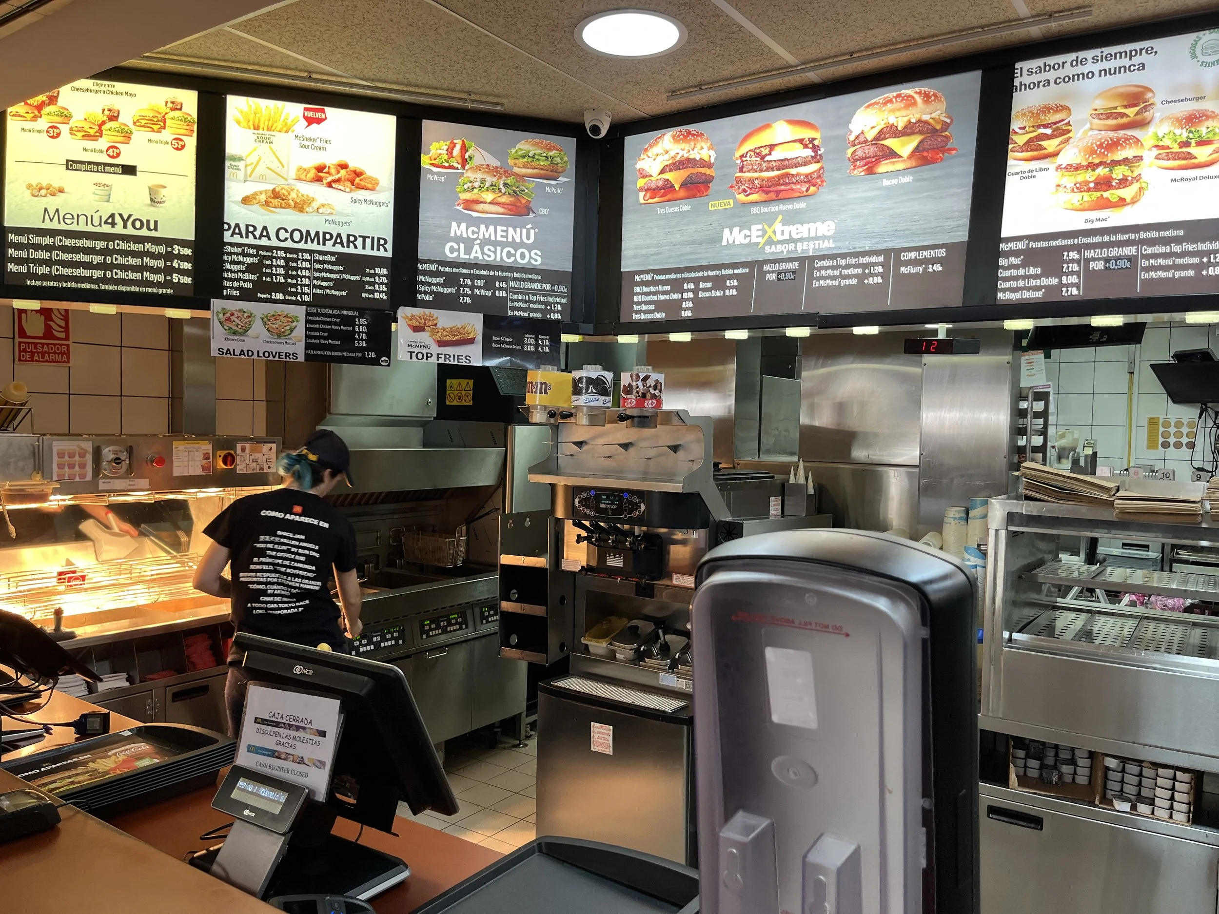 Tiina, Ossi ja Mika esittävät turistia Mäkkärin ulkoilmaterassilla.
