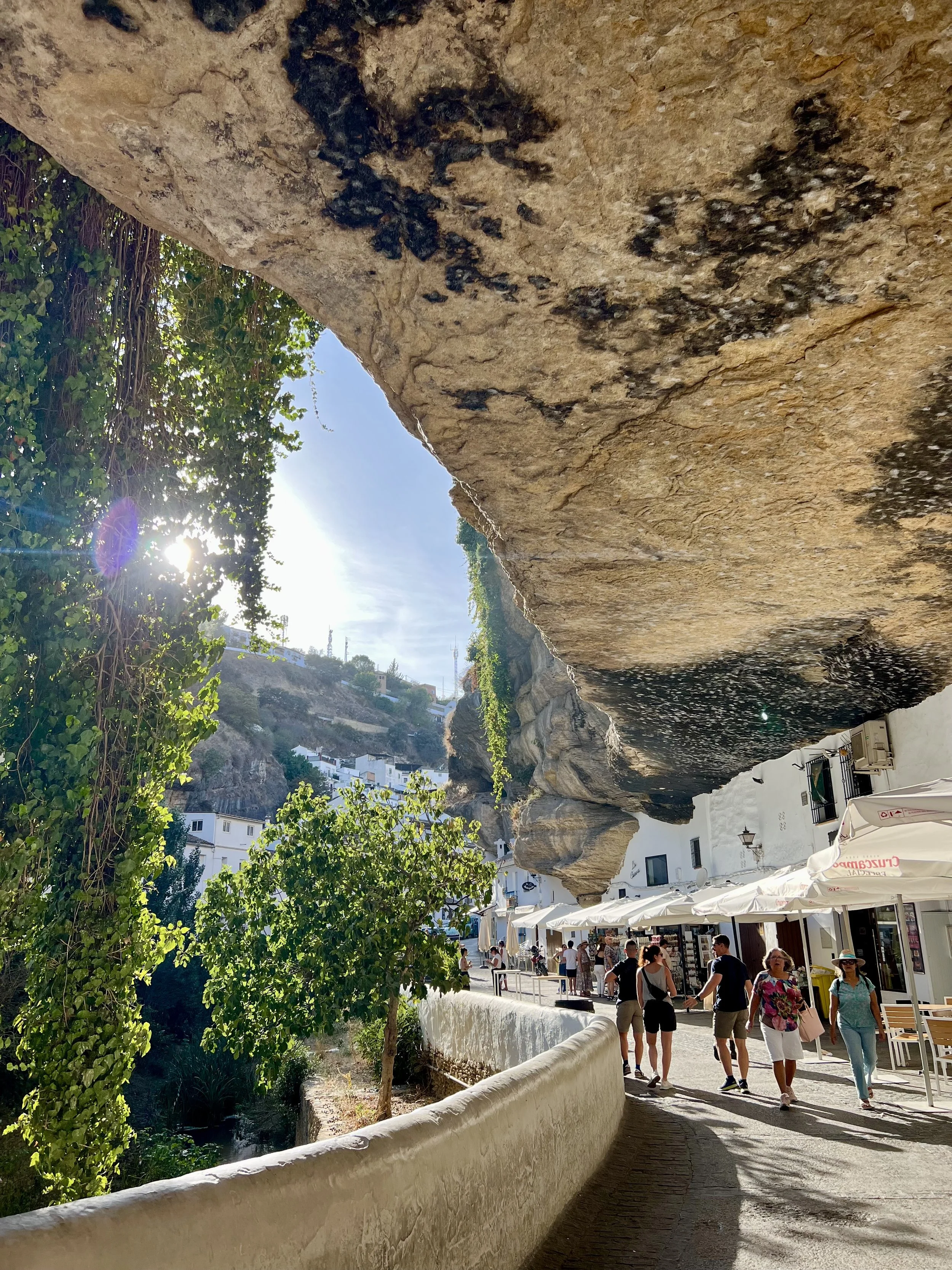 Grazalema sai jäädä tällä kerralla näkemättä kun suhautimme suorinta tietä Zaharan kautta Seteniliin katsastamaan kaupunkia, jonka jotkin rakennukset oli rakennettu luonnonkalliosta muodostuneen lipan alle. “Suorin tie” Zaharaan oli ehkäpä jonkinlainen “sokerina pohjalla loppuyllätys” tai jonkinlainen vitsi, sillä tällä osuudella ei ole juurikaan suoraa tietä nähty, mutkia kylläkin..