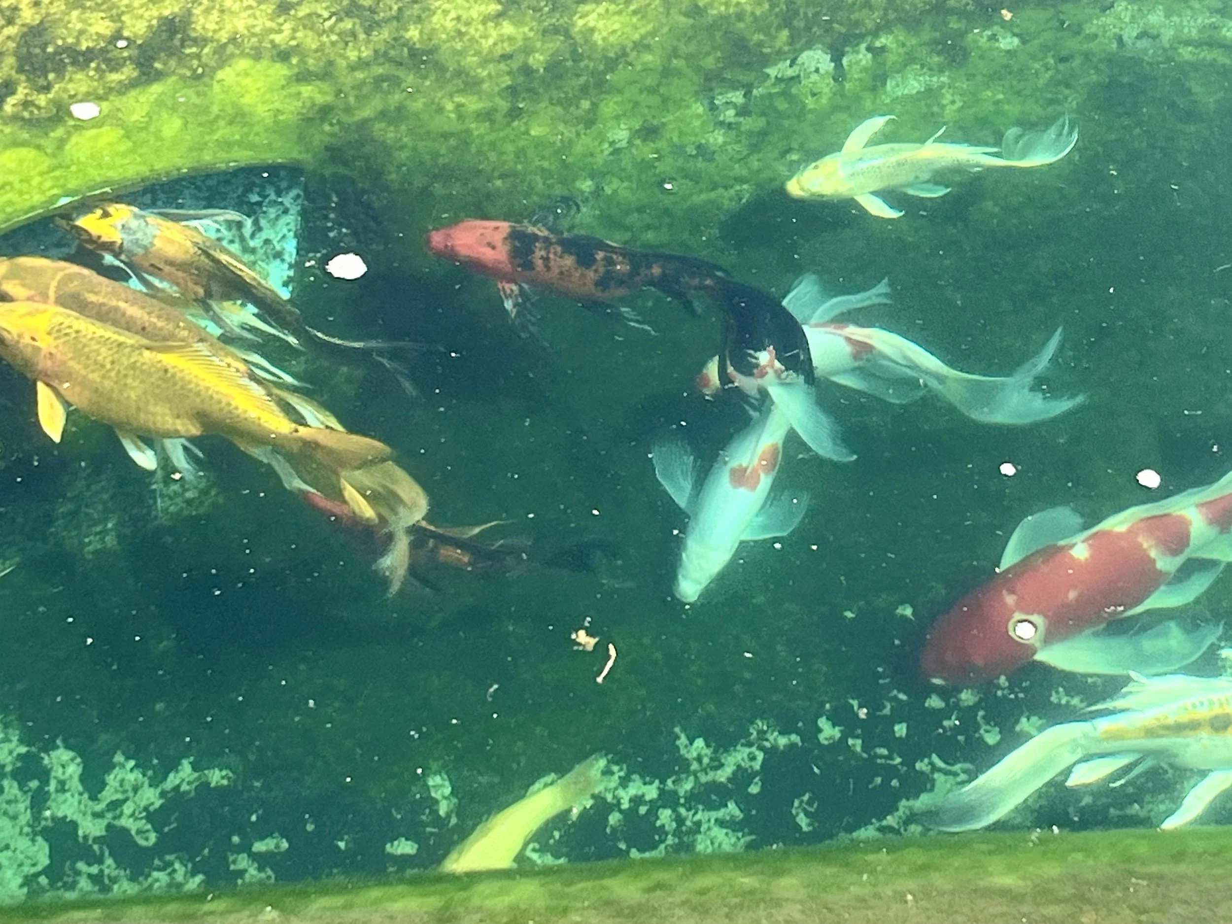 Puutarha-alueella on yhdeksän erilaista, toinen toistaan kirkkaammin kimmeltelevää valkoista rakennusta.