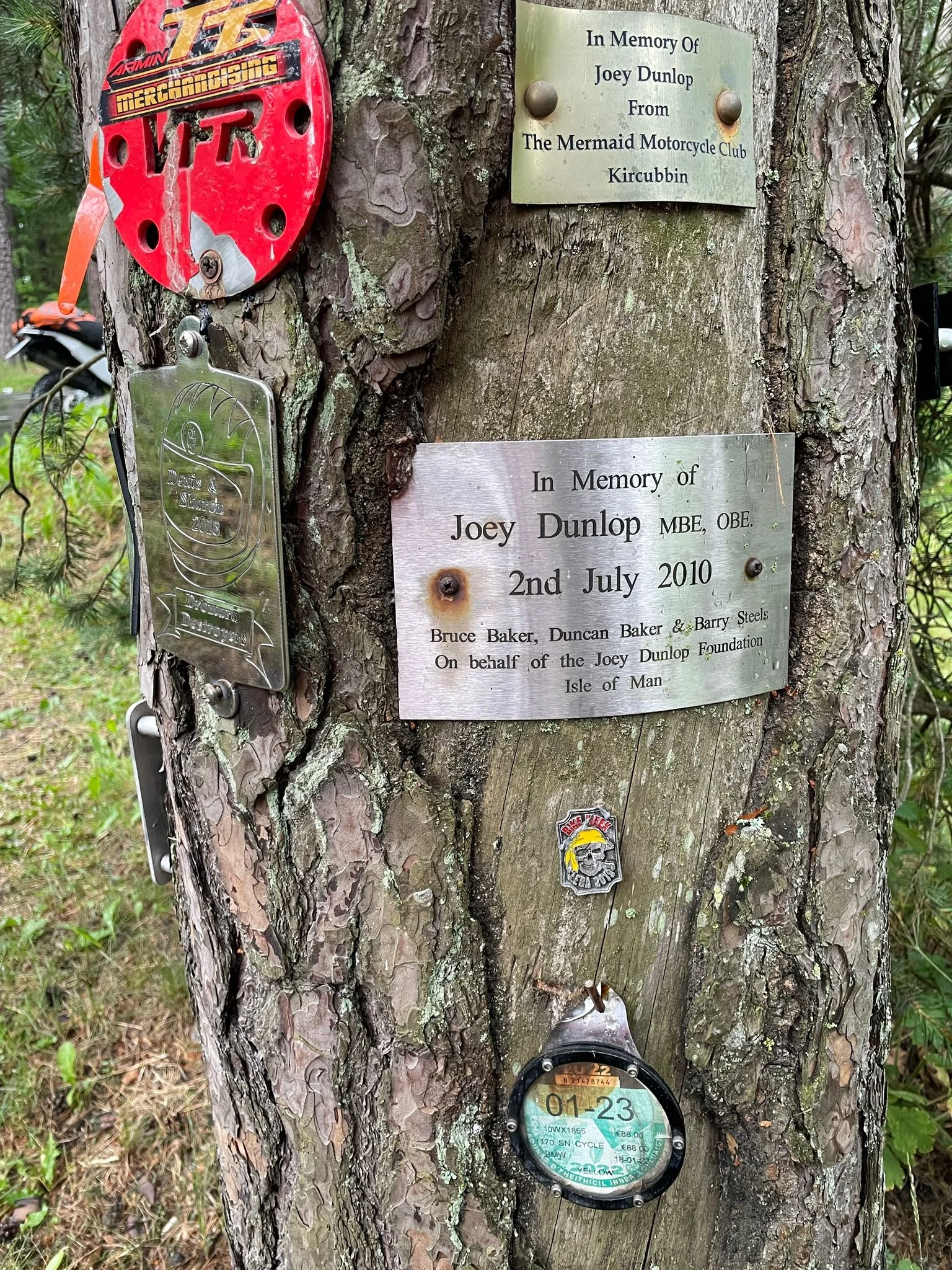 Päivän ensimmäinen pysäytys oli Joe Dunlopin muistomerkilä, paikalla oli tuoreita kukkasia ja kynttilöitä palamassa. Joe menehtyi 2.7-2000, joten eilen oli tullut onnettomuudesta kuluneeksi 24 vuotta.