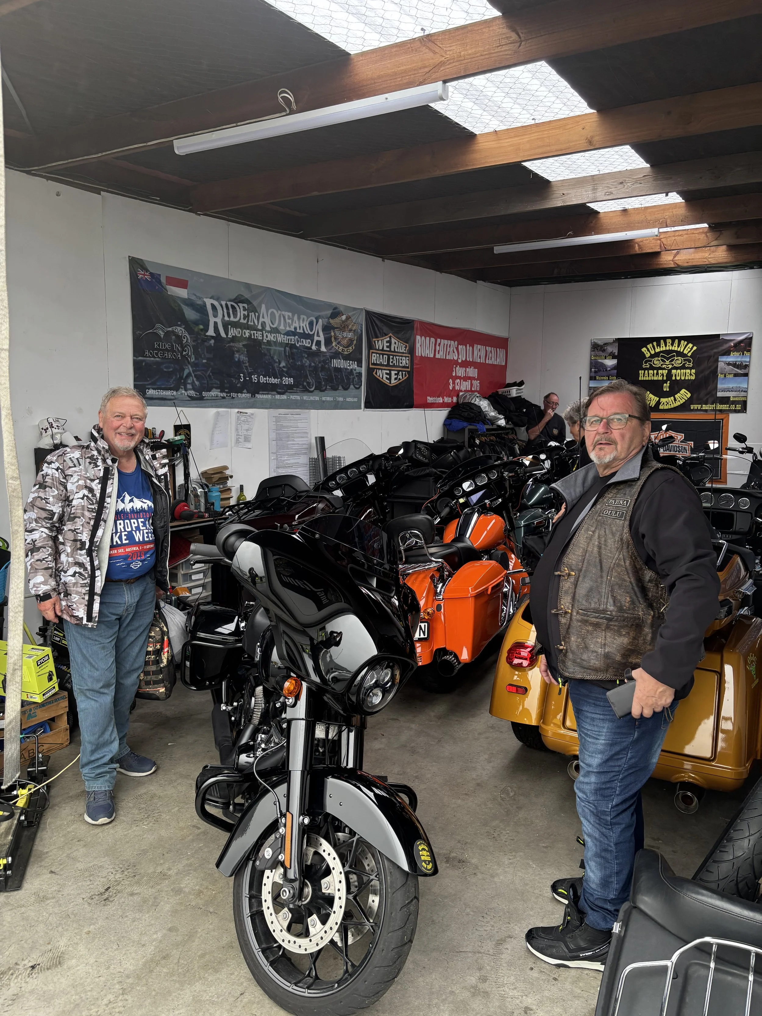 Pikainen pysähdys matkalla muiden pyörien luokse. Aucklandin pohjoinen HD liike. T-paita kaupasta ja taas mentiin, siihen ei mennyt kuin 5min.