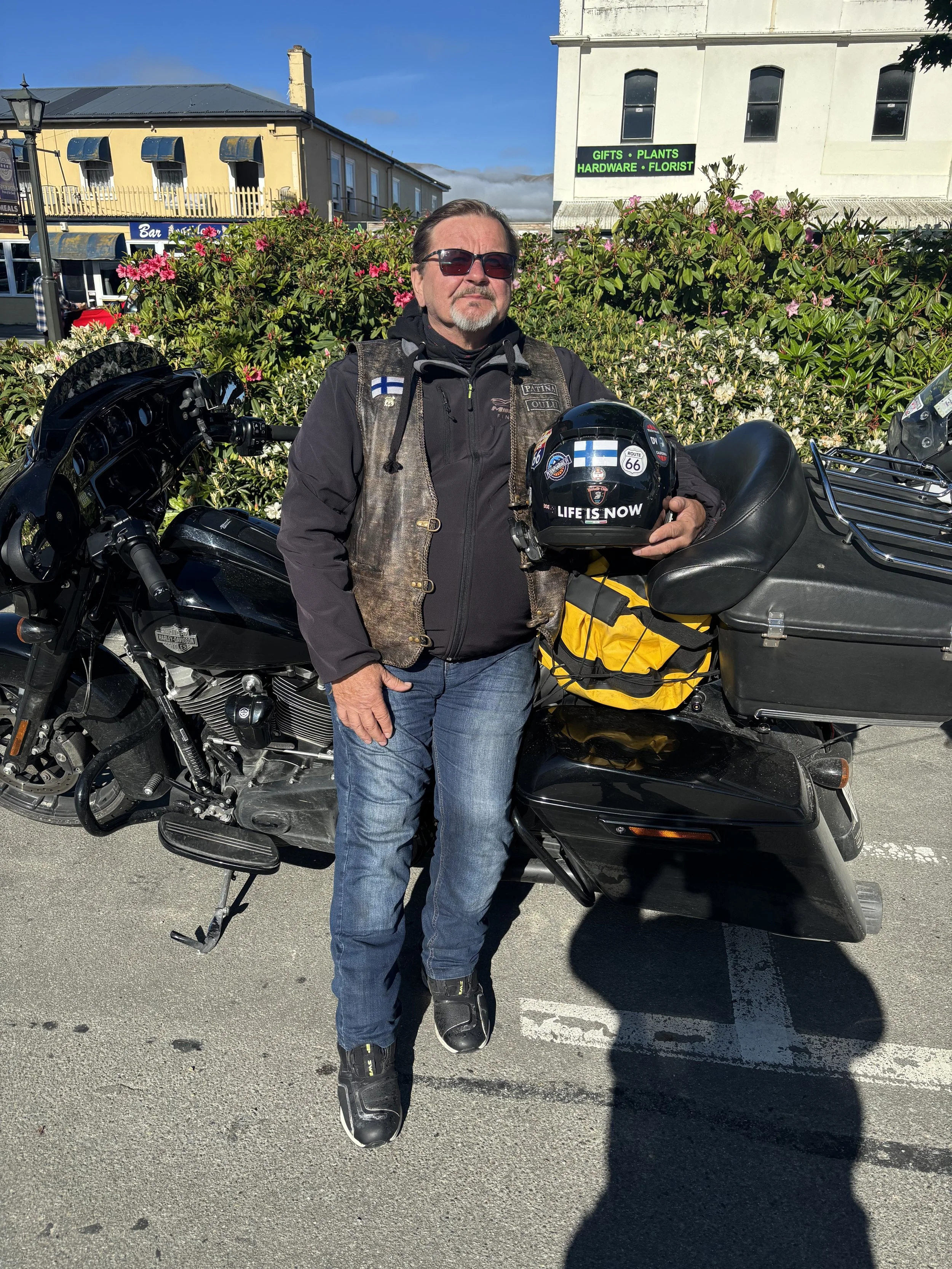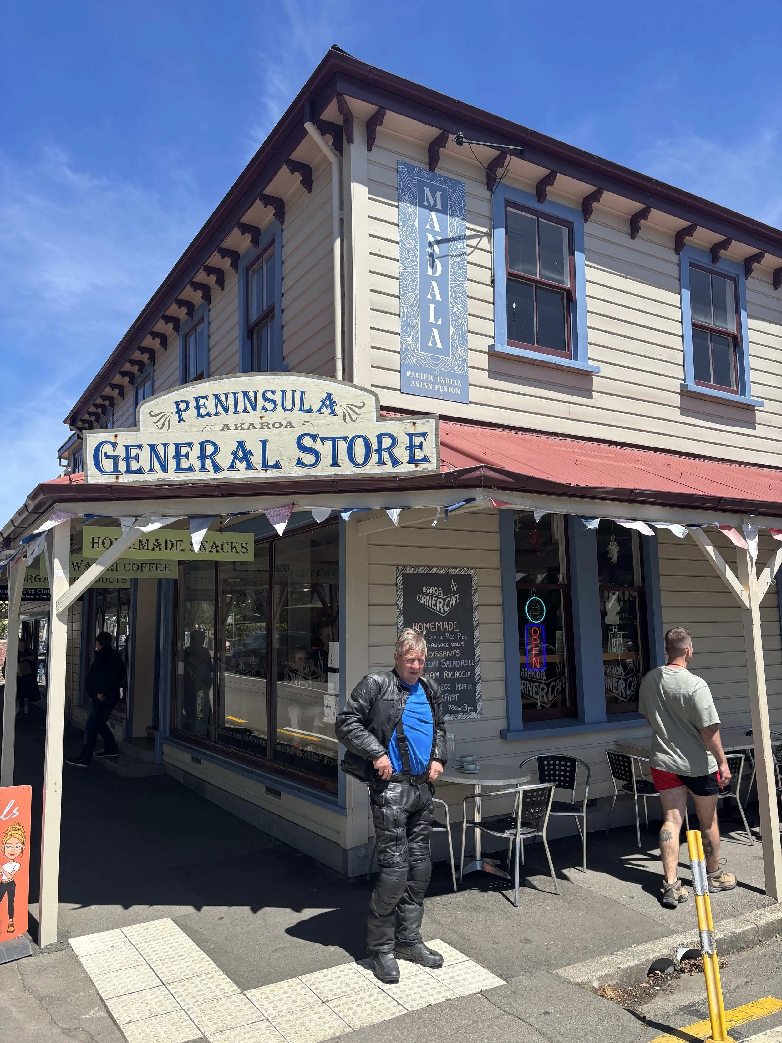 Ajettiin vielä Bank’s niemimaalle ja siellä pieni soma kaupunki Akaroa. Kevyttä lounasta ja hienoa tietä pyörien palautukseen. Uusi Seelanti tarjosi parille viimeiselle ajopäivälle kyllä parastaan. Maisemat olivat aivan mielettömän hienoja, tiet motoristin unelmia. Aurinkoa ja lämpöä.