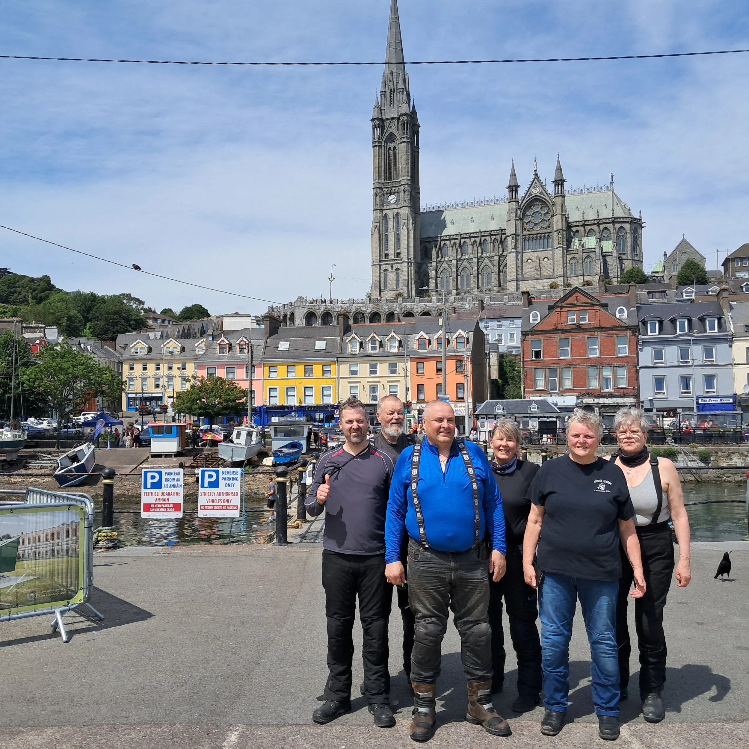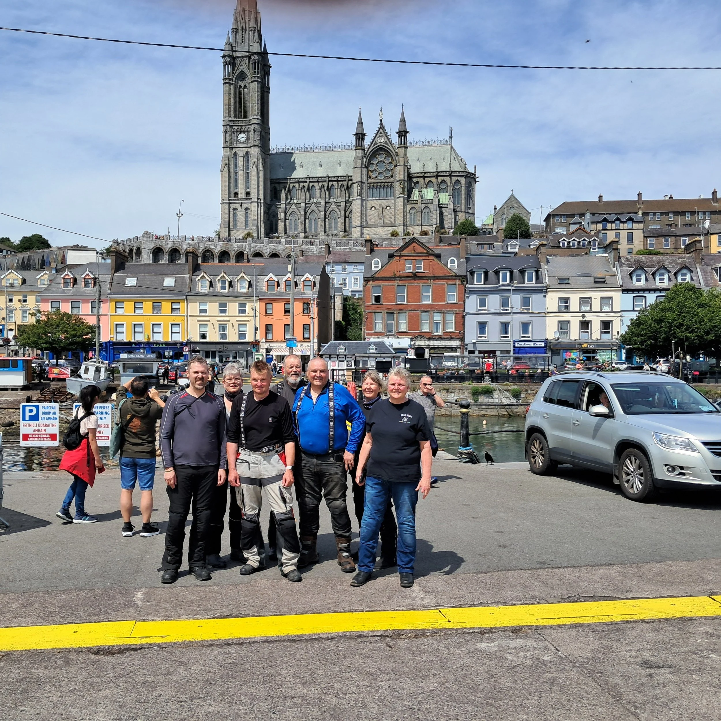 Kohta puolin saavuimmekin Atlantin rannalla Cobhin kaupunkiin, jossa sijaitsee mahtava St. Colmansin katedraali. Voin sanoa, että tässä on sitä jotain. Mereltä katsottuna vieläkin komeampi. Kirkon jälkeen lyhyt siirtymä laiturille mopoparkkiin. Tästä kaijasta lähtevät vesibussit Spike Islandille.