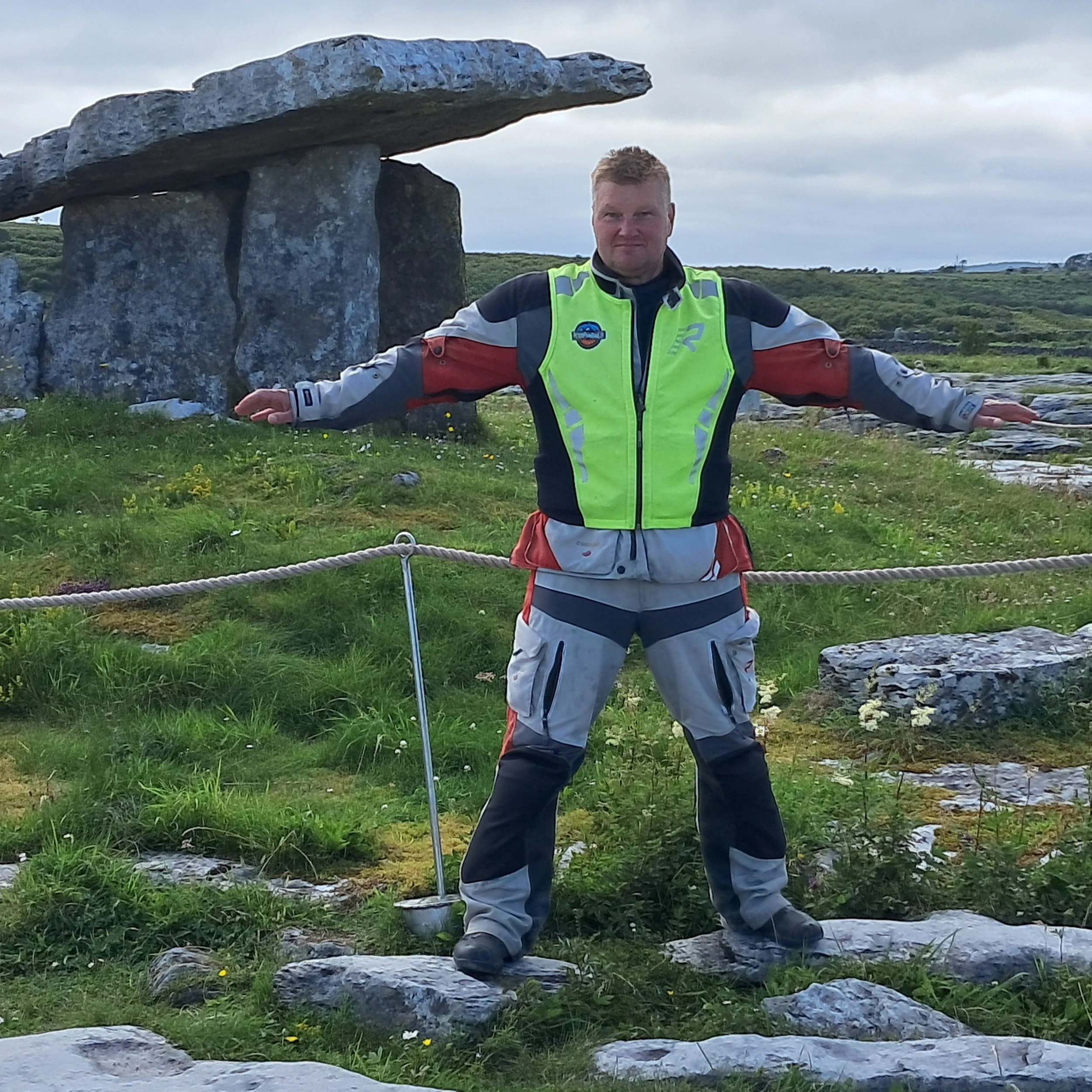 Burrenin ”kuunmaisema tietä” pitkin Poulnabronen Dolmenille. tämä arkeologinen monumentti on pystytetty pari tuhatta vuotta ennen pyramideja. Vielä vähän mutkia ja sitten oltiinkin jo Irlannin neljänneksi suurimmassa kaupungissa Galwayssa. Tankkaus ja yllätys, yllätys katu oli suljettu, niin jouduimme kiertotielle.