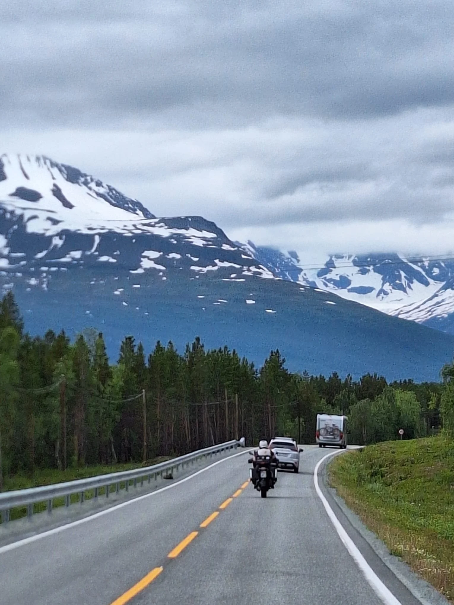 E6 valtatie vei meitä muutaman kilometrin verran kohti etelää, kunnes heittettiin U-käännös, ja palattin Lyngen -vuonon länsireunaa pitkin takaisin kohti pohjoista, kunnes noin Ykeänperän korkeudella käännyttiin länteen ja suuntana oli Tromsså, tämän ajopäivän etappi ja yöpymiskohde.