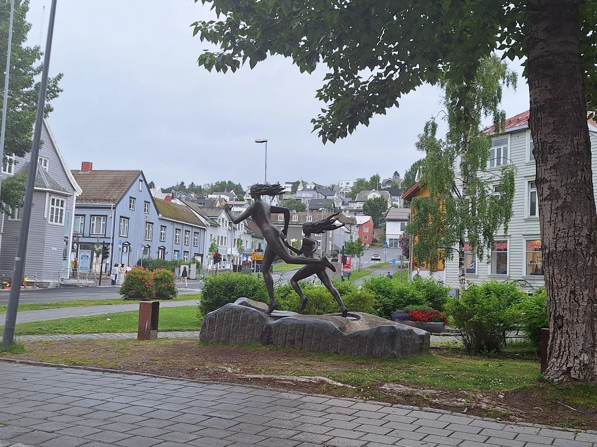 Tromsaan saavuttuamme ajettiin sight seeing -tyylisesti kaupungin halki majapaikkamme hotellin autotalliin, minne pyörät jäivät nukkumaan. Kuljettajat ja kyytiläinen kirjattiin hotelliin ja matkanjohtaja lähti kuin rasvattu salama varaamaan illallispöytää läheisestä ravintolasta. Illallisen jälkeen käveltiin pieni iltakävely, jonka yhteydessä käytiin varmistamassa aamun aamiaispaikan sijainti. PIkainen tutustuminen maailman pohjoisimman panimon, Mackin olutravintolaan kruunasi tämän upean ajopäivän.