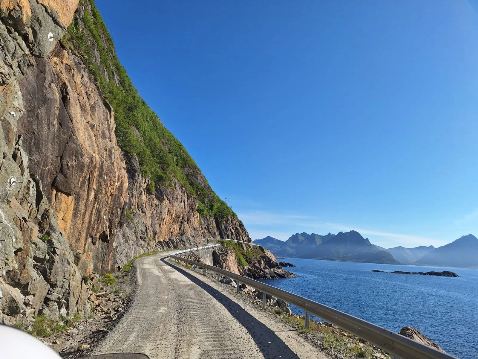 Andenesista lähdettiin ajelemaan Norjanmeren puoleisen rannikon paikallisteitä pitkin kohti etelää. Upeita maisemia, vuoria, hiekkarantoja, raitista ilmaa ja kiharaisia, rantaviivaa seuraavia teitä riitti koko päiväksi.