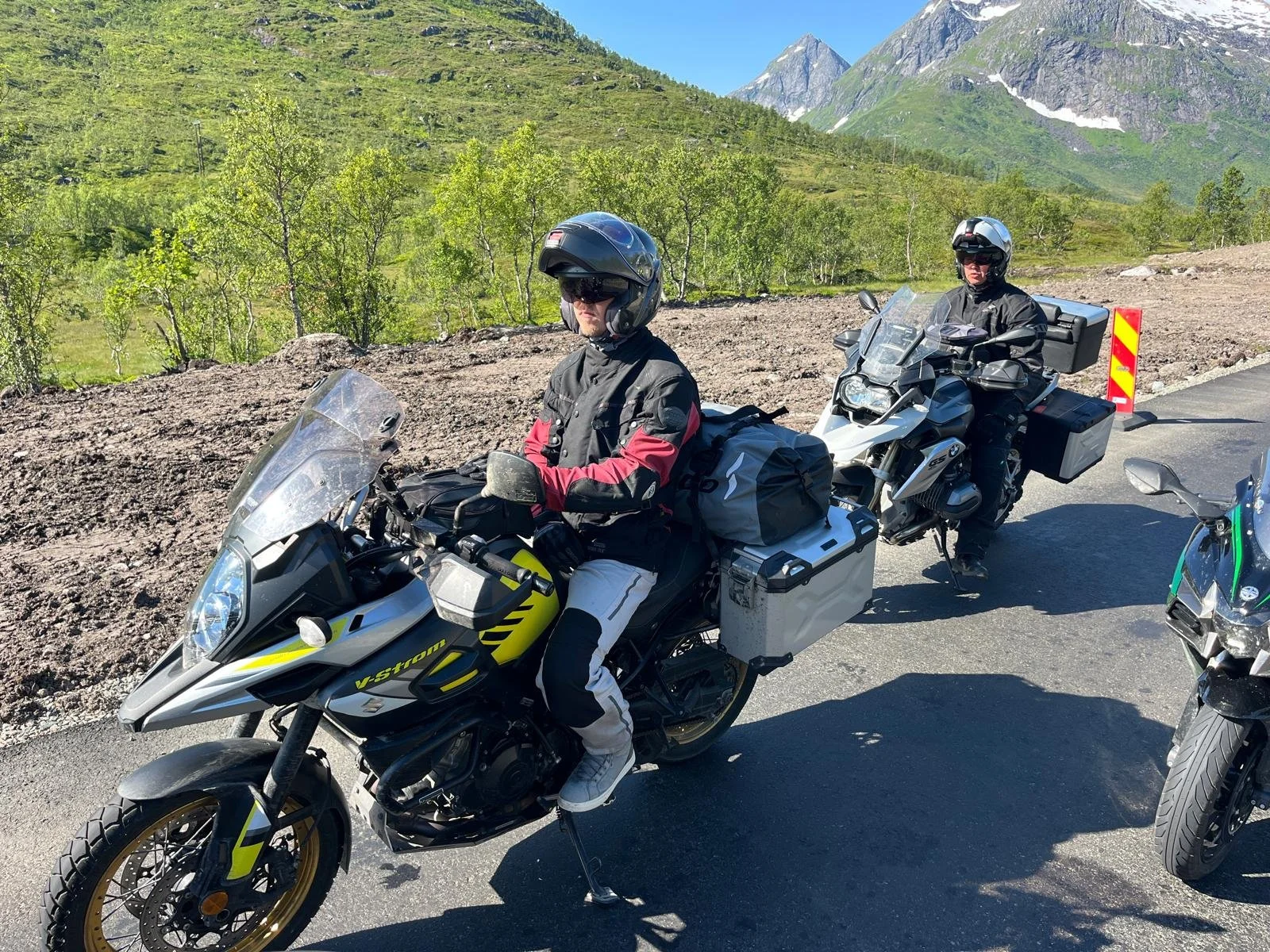 Ville ja Suzuki V-strom 650, taustalla Mika ja BMW R 1200 GS