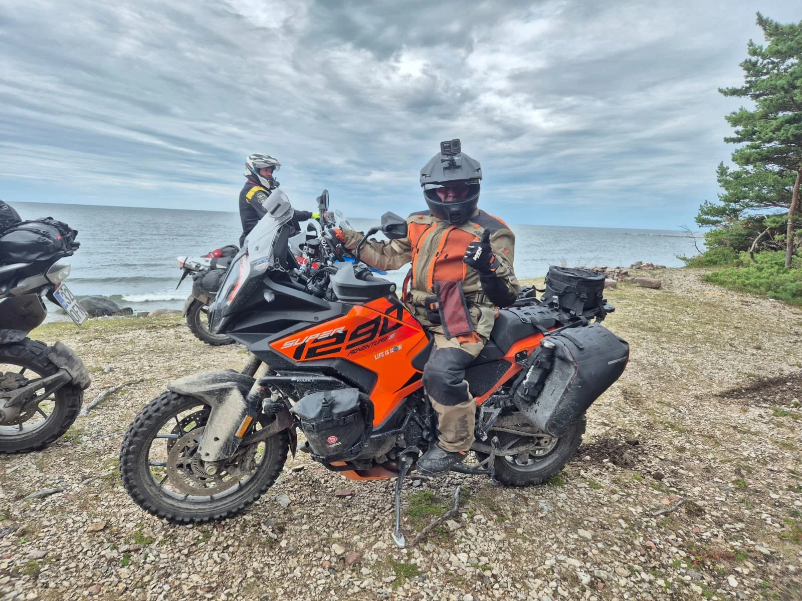 Taas takaisin reitille, kohta aurinko näyttäytyi ja loppupäivä ajettiin varsin kelvollisessa säässä kohti saaren eteläkärkeä. Matkan varrella ihasteltiin upeita vanhoja rakennuksia ja hienosti hoidettuja pihapiirejä. Olipa tosin joitakin hylättyjä röttelöitäkin, joka kertoo omaa tarinaansa kaupunkiin muutosta. Saarenmaan eteläkärjessä tuli voittamaton vesieste vastaan nimeltään Riianlahti, joten käännyttiin takaisin pohjoiseen ja ajettiin “muitta mutkitta” Kuresaaren majapaikkaamme.