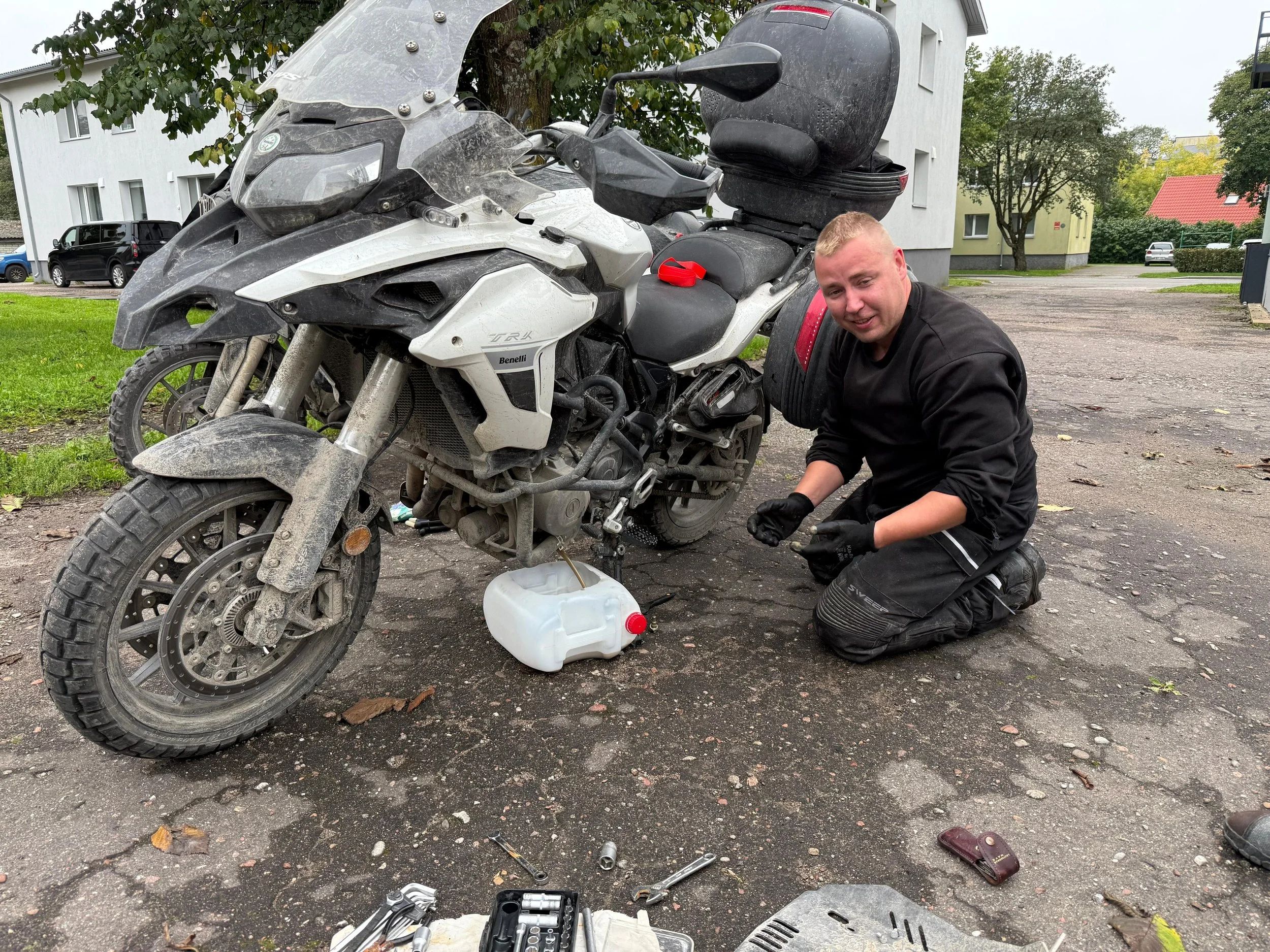 Aamu alkoi siis aamupalalla ja öljynvaihdolla, jonka iskuryhmä Sons of Kuusisto, Markuksen ja Jounin avuliaalla asiantuntemuksella toteutti hotellin parkkipaikalla. Eikä ollut edes maanantai…