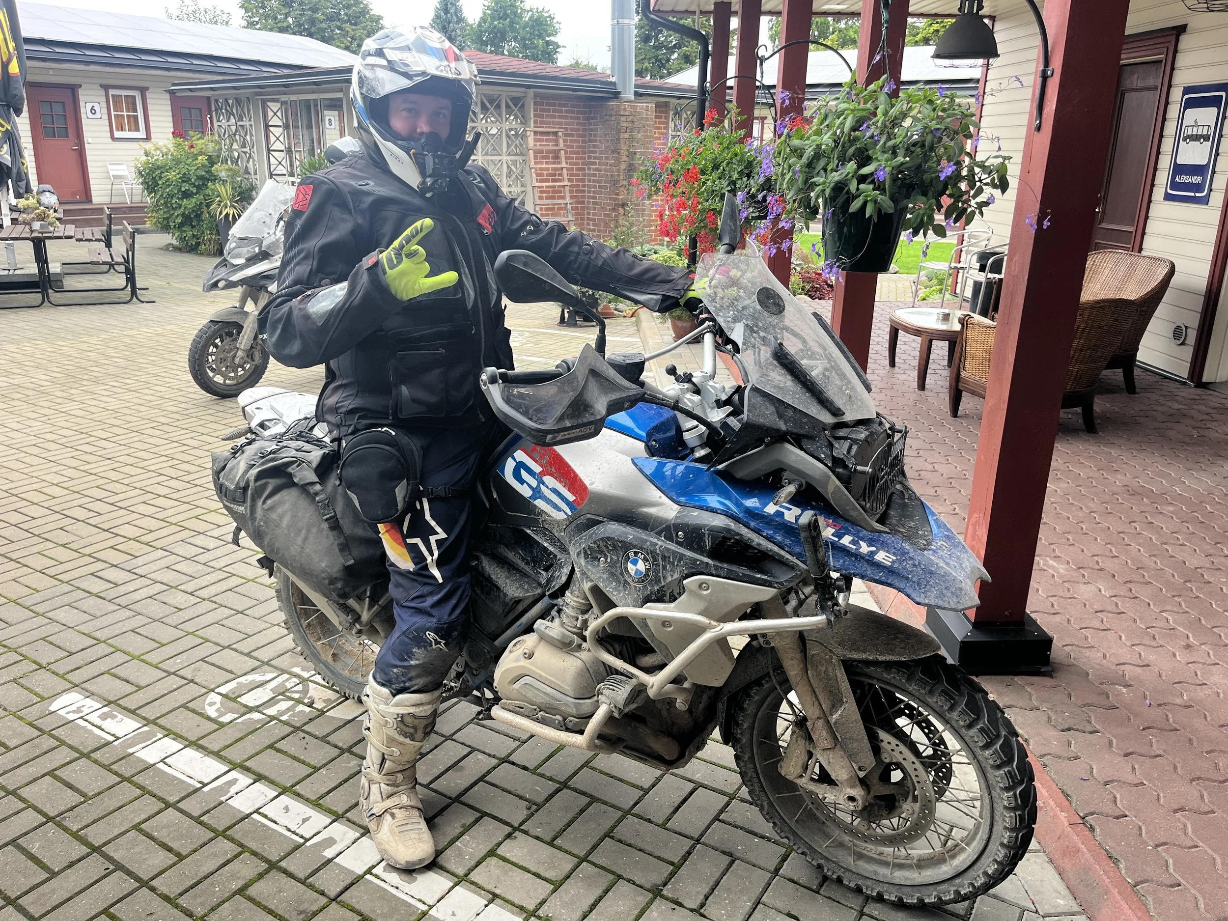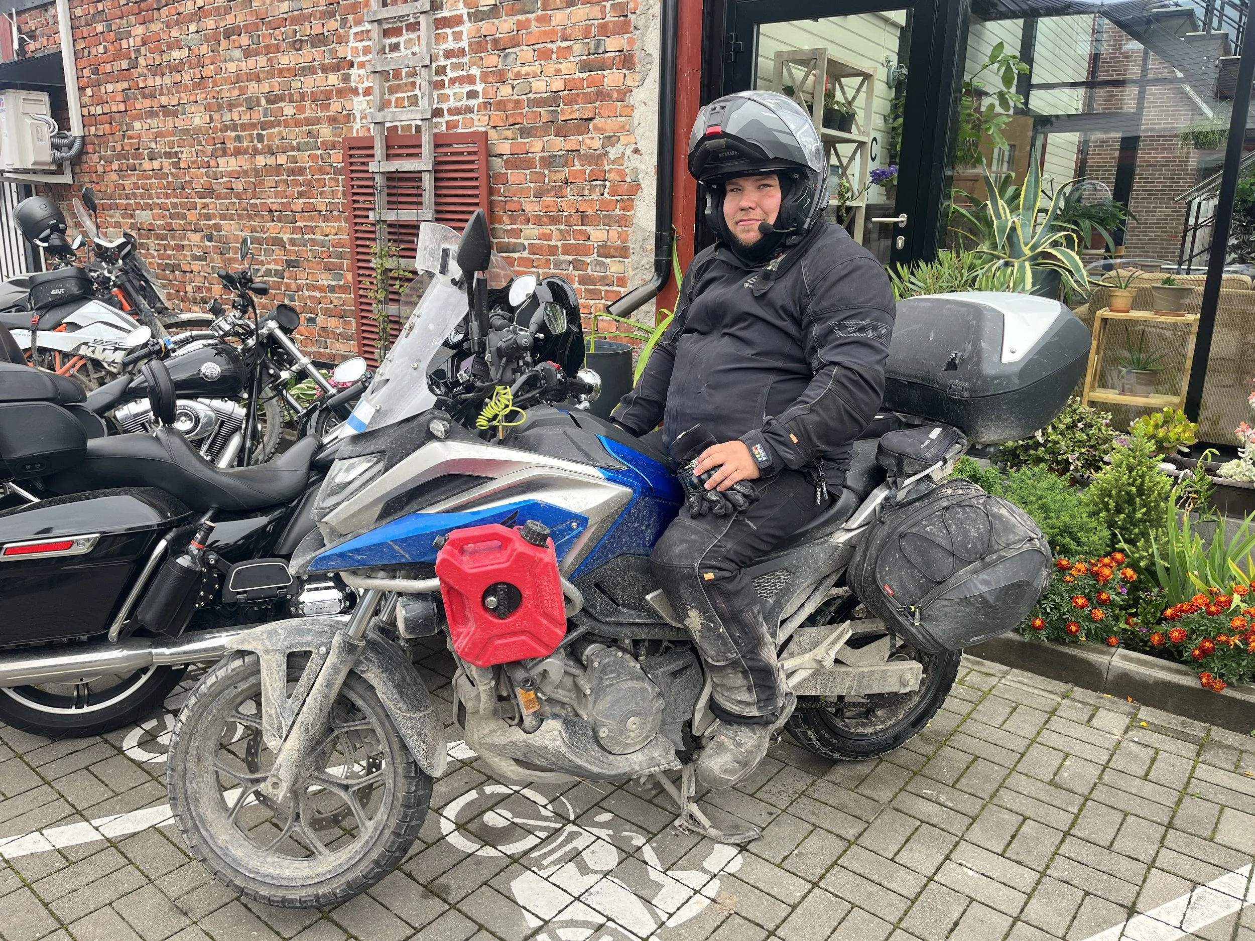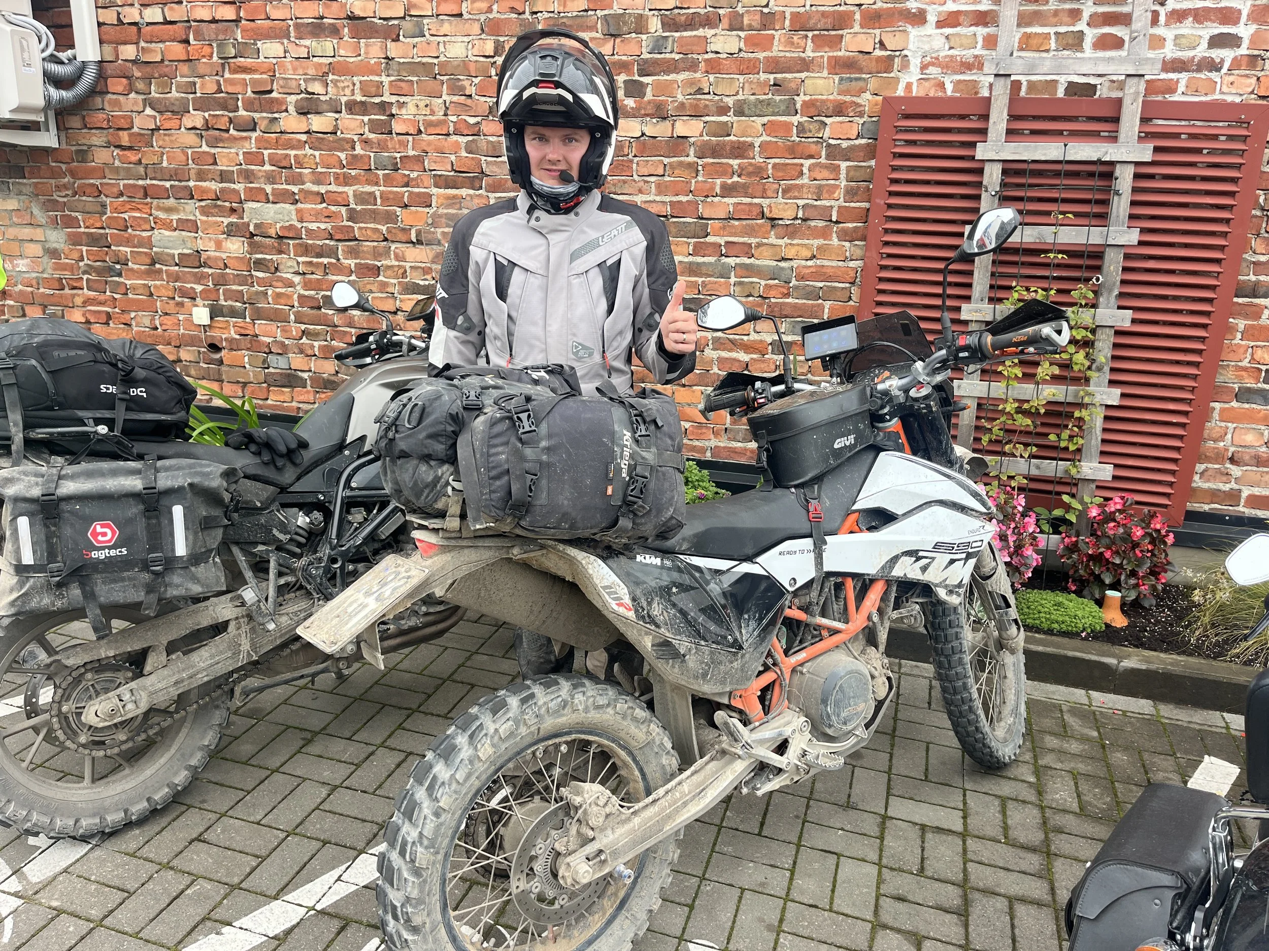 Markus, matkan kuutiotilavuuskuningas isolla Kotari 1290 Super Adventurellaan. Mies vei pyörää eikä päin vastoin.