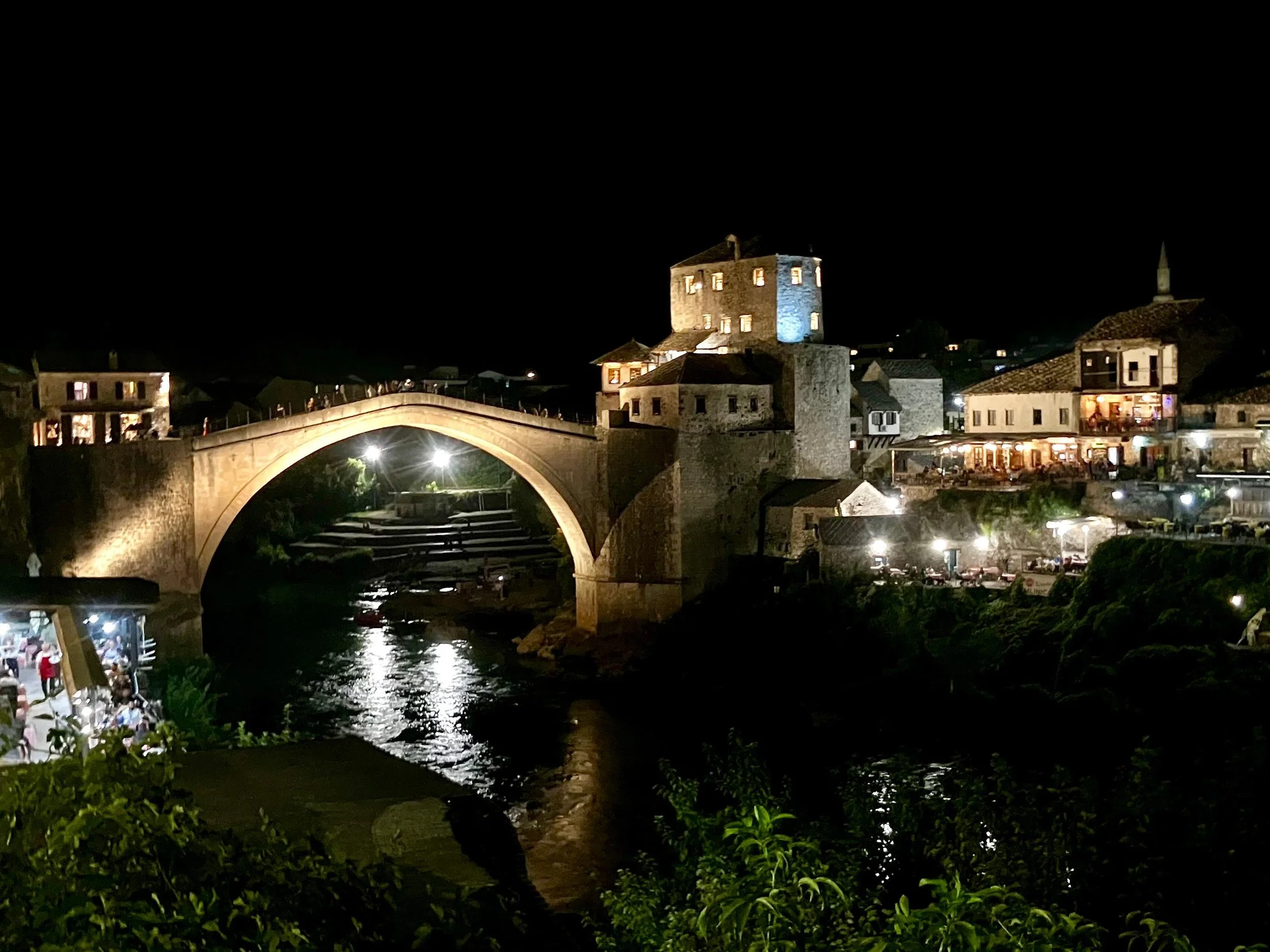 Illalla suunnattiin vanhaan keskustaan. Kapeat kujat ja kivitalot johdattivat kohti kaupungin sydäntä: Stari Most -siltaa, joka on koko Mostarin symboli. Pakolliset valokuvat sillalla ja illan hämärtyessä valaistu silta hohti kauniisti joen yllä.