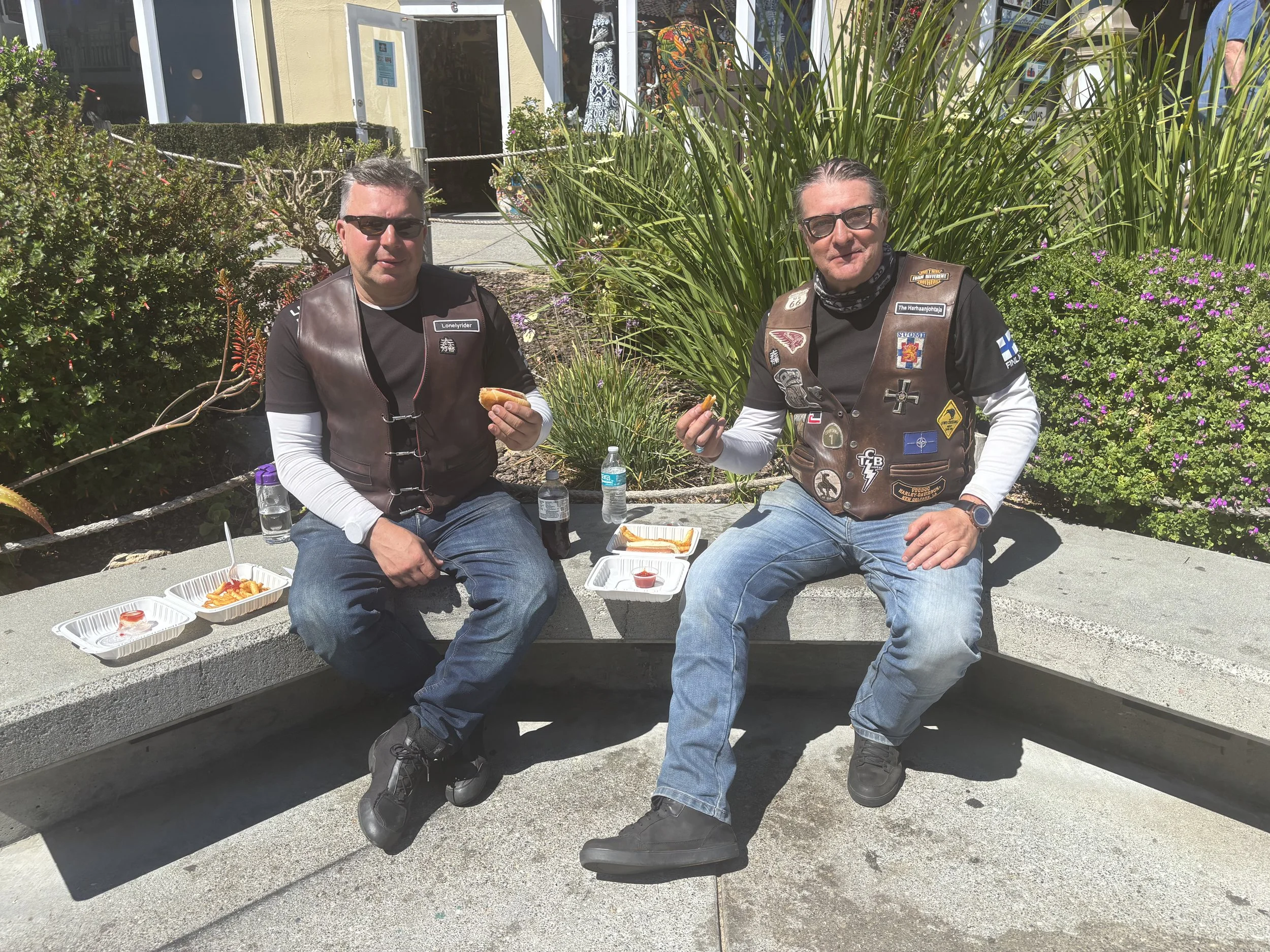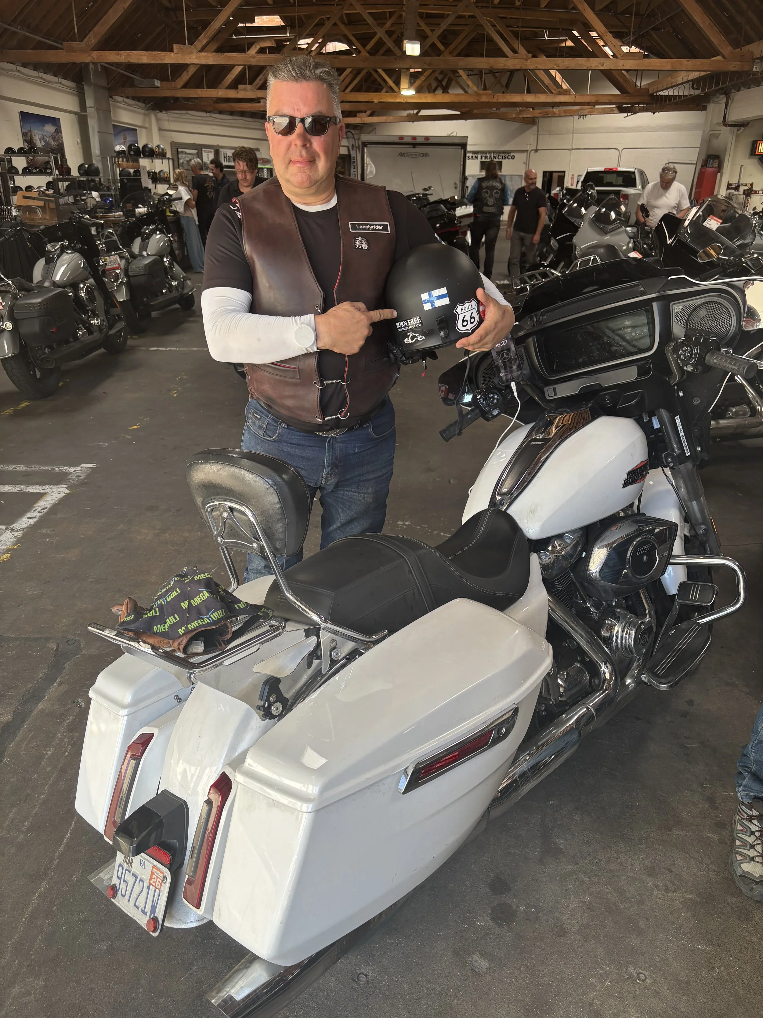 Tuolla olisi viihtynyt pidempääkin, mutta pyörät piti palauttaa ennen klo 17. Matkaa vielä San Franciscoon noin 200 km ja liikenne voi huonoimmassa tapauksessa seisoa. Niinpä matkaan ja jatkettiin 101 tietä pohjoiseen. Perille vuokraamoon ehdittiin noin 16:15. Vuokraamon henkilökunta tarkisti pyörät pikaisesti ja totesi kelvollisiksi. Mitäs niissä nyt olisi ollut, kun oli huippukuskit niitä ajamassa. Ei mitään haavereita ei edes parkkipaikalla kellahtamisia.