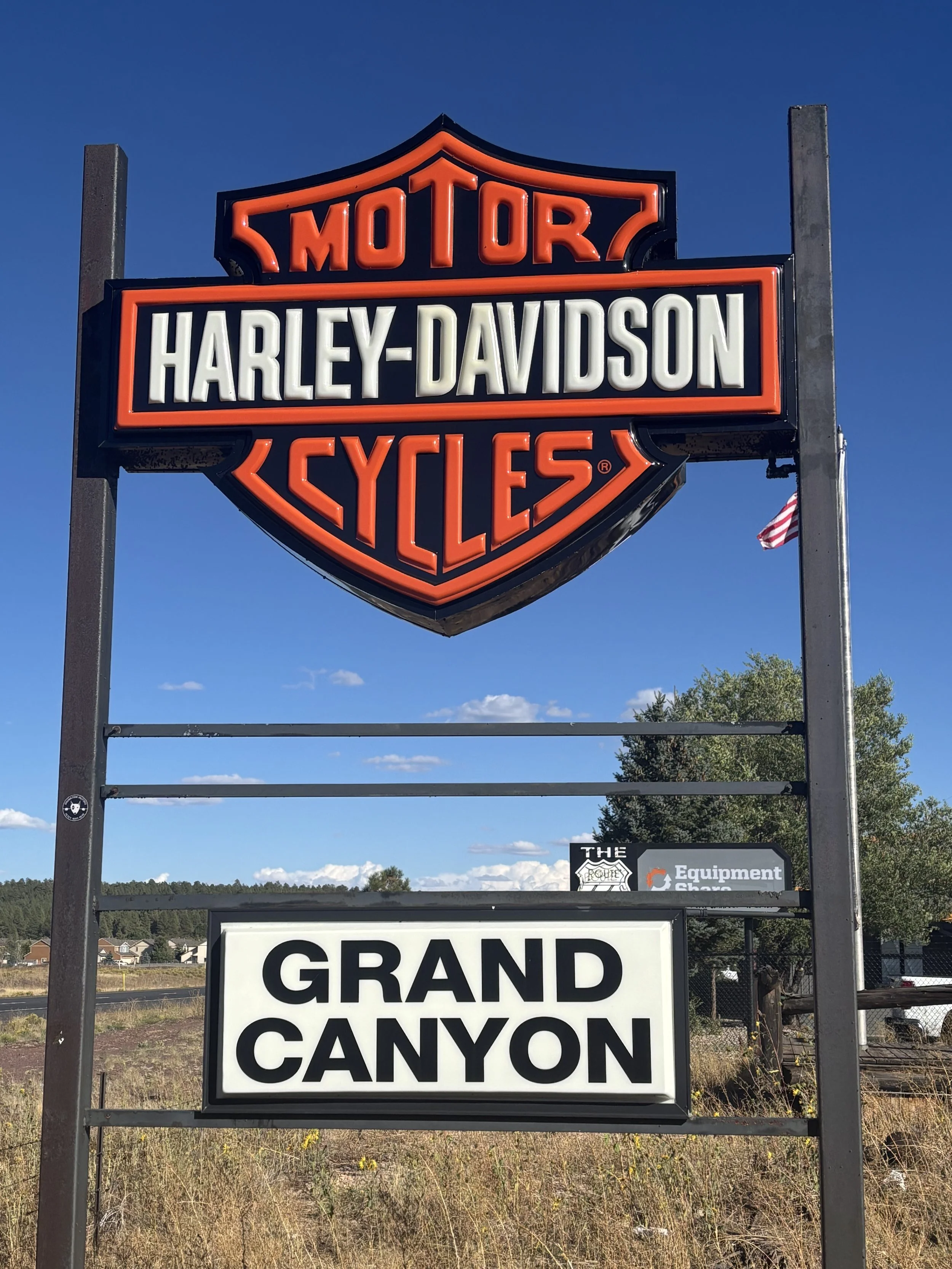 Pienen pientä harmia The Harhaanjohtajan harrikassa, vuoti öljyä. No onneksi matkalla oli Eagleridersin yhteistyö kumppani Harley-Davidson Grand Canyon. Sinne siis ja pyörä huolista kertomaan. Homma otti sen verran aikaa, että nimesin vara sheriffin ja laitoin asiakkaat matkaan kohti päivän kohdetta Prescott. Ehtivät hyvin perille valosalla ja The HJ juuri auringon laskeuduttua.