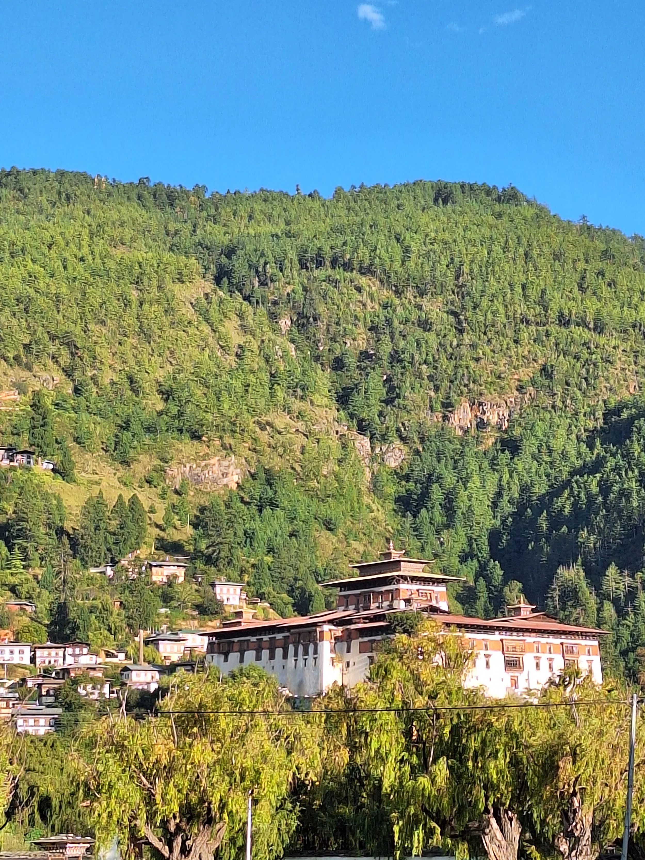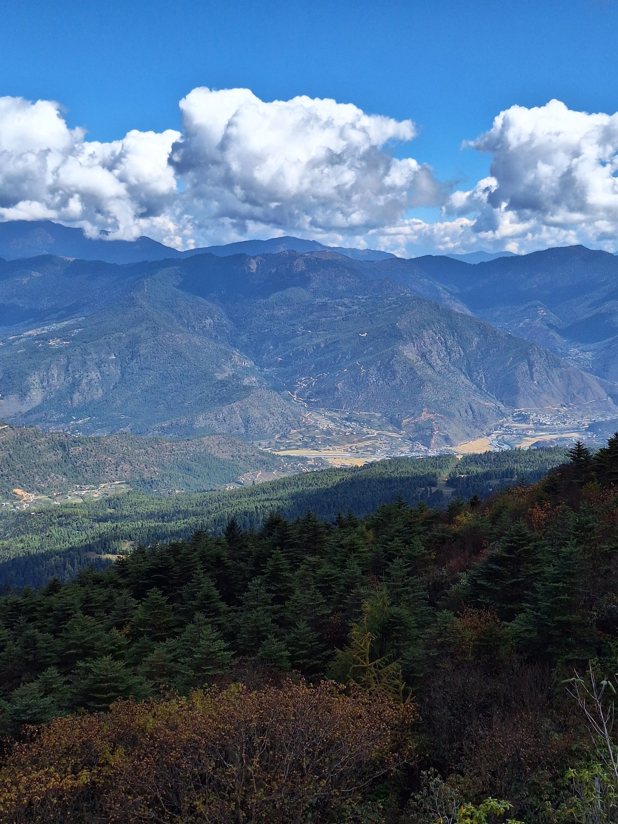 Sieltä näkyi tänään hyvin Bhutanin ja Kiinan rajalla oleva lumihuippuinen yli 7 km korkea mänennyppylä, Bhutanin vartija Kiinaa vastaan. Myös Katzentsunga Nepalissa näkyy tänne, ellei se ole ujosti pilvessä kuten tänään.