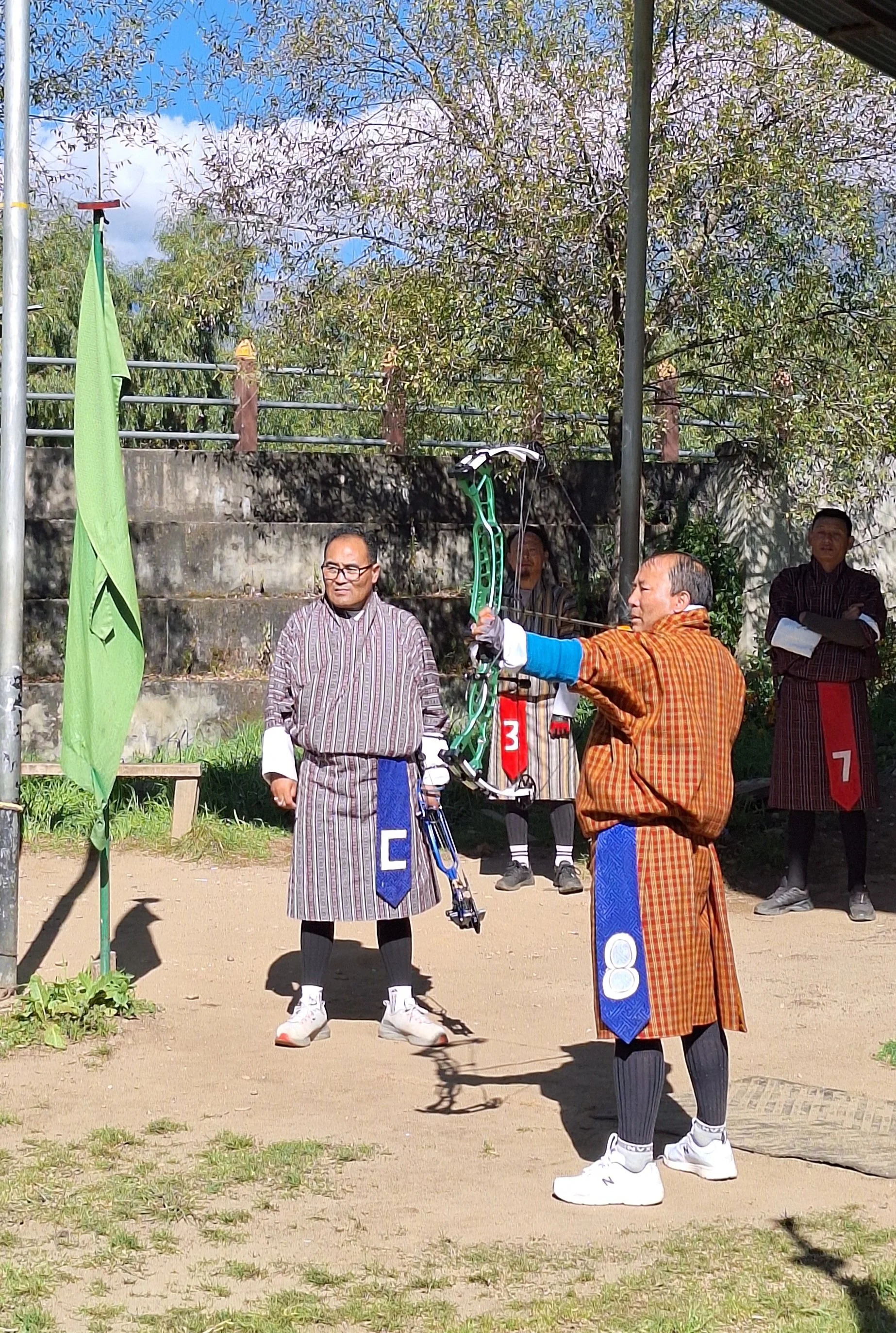 Aamiaisen jälkeen poikettiin vielä jousiammunta kilpailuissa. Useampia paikallisia joukkoeita kisaili koko lauantain ja me käytiin alkukarsintoja zekkailemassa. Pelkän nuolien räiskimisen lisäksi lajiin kuuluu tansseja ennen ja jälkeen nuolen singauttamisen ja vastaavasti maalitaulun lähellä olevan kilpakumppanin pilkkalaulut ohi menneestä nuolesta ja arvostuksen osoitukset osumista. Kunnon show.