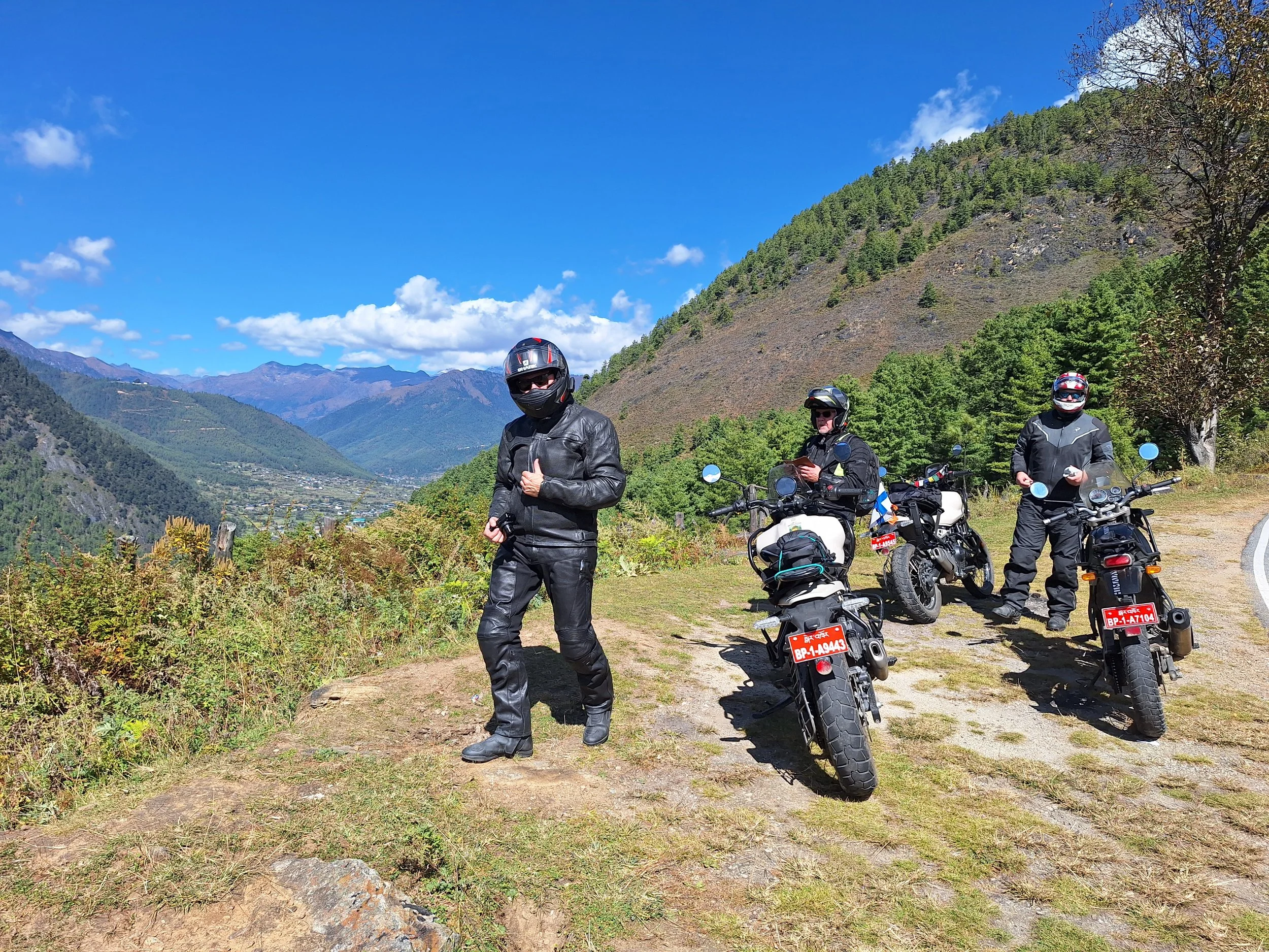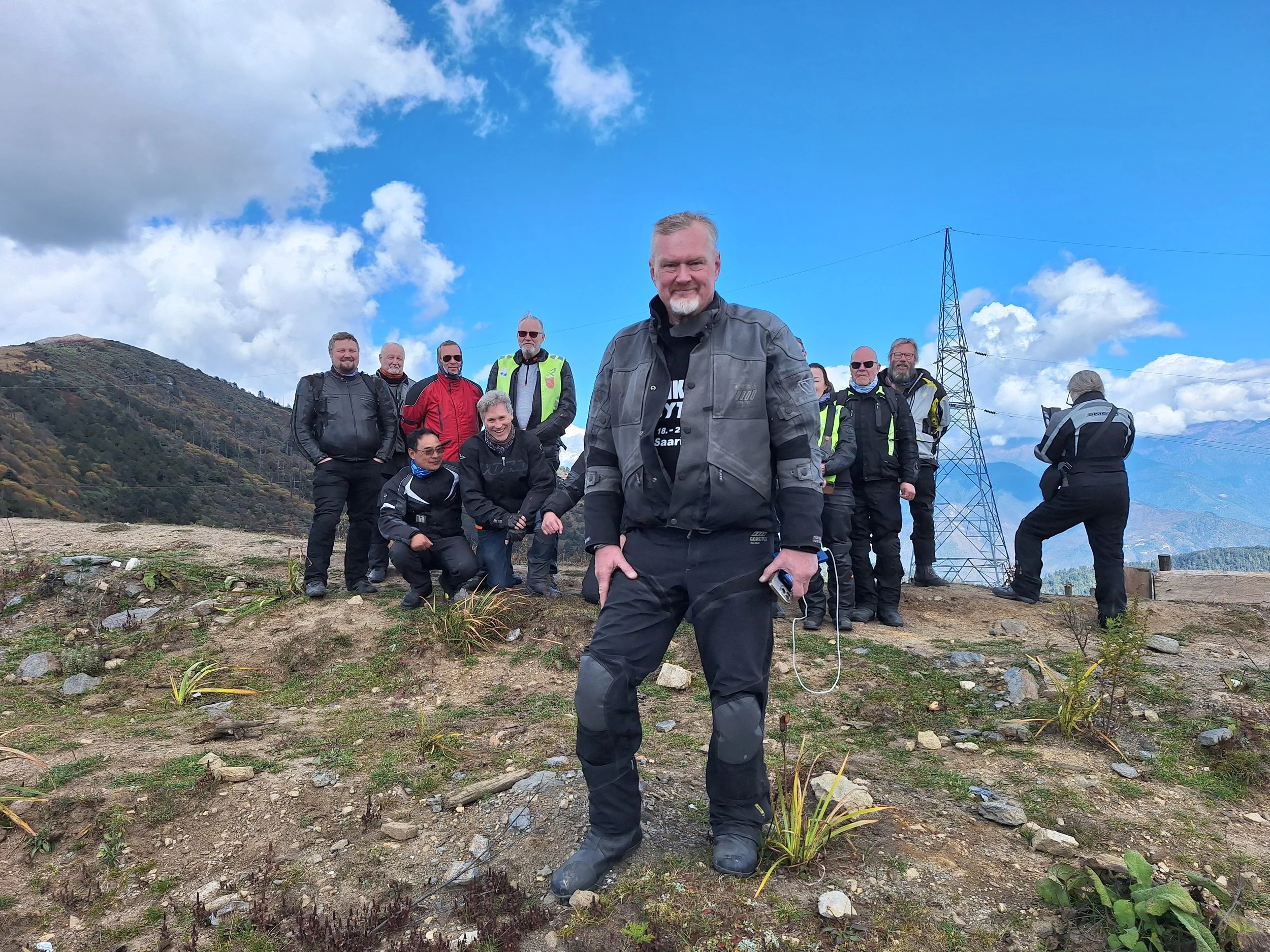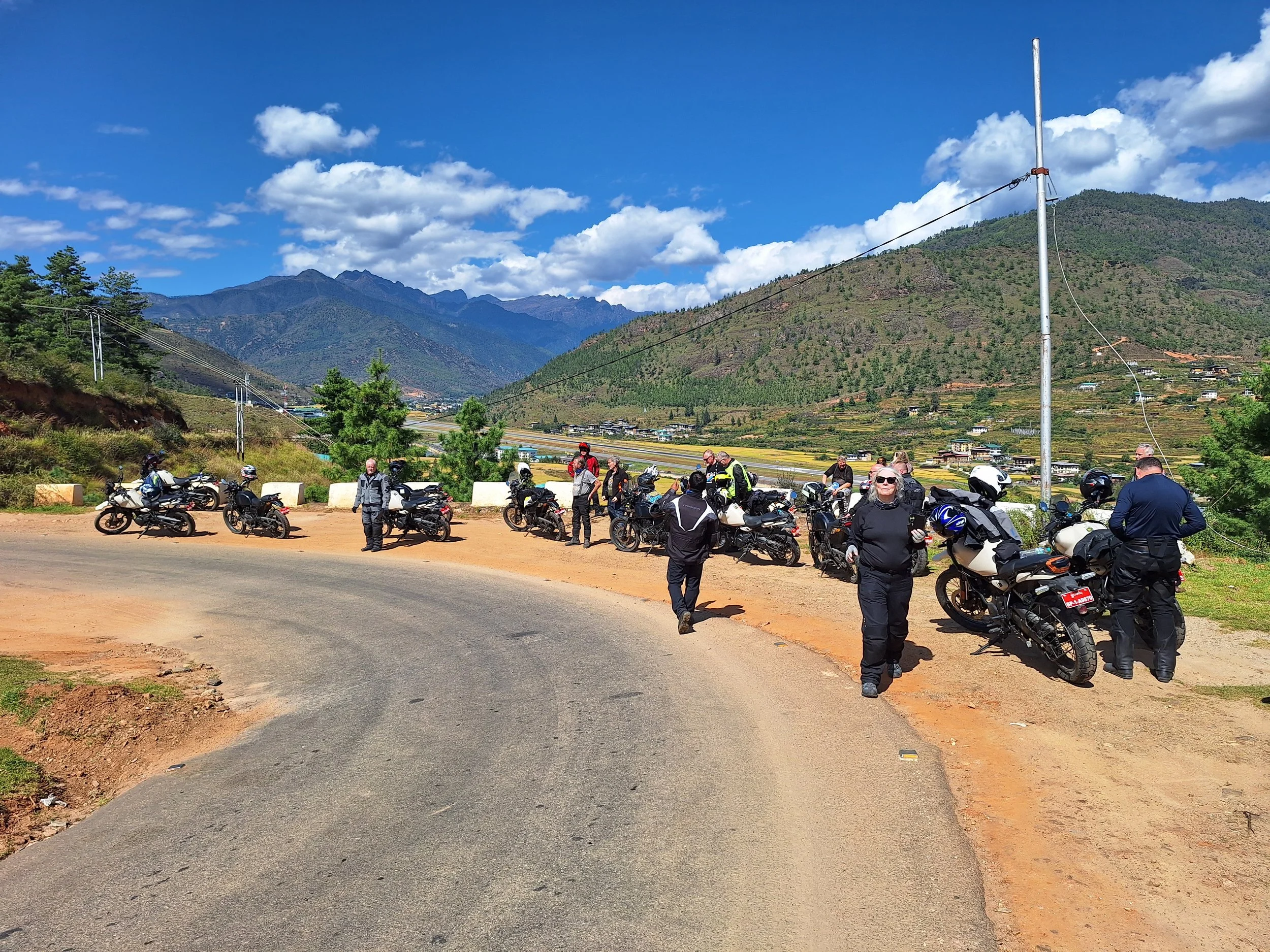 Vuoren ylitykseen on vain yksi tie, joten vaaraa ryhmän eksymisestä vuoriston sokkeloihin ei ollut. Päätettiin ajaa päivä kukin omaan tahtiin, yksin tai pienemmissä ryhmissä. Indie-ajamisessa on mukavaa, että kukin voi rallatella menemään ihan itselleen sopivaa vauhtia, pysähtyä vaikka minkä kuusen juurella, tai olla pysähtymättä ja painaa vaijeri kireällä mutkaa. Tie oli tosi kapea, vaikkakin asfaltti parasta mitä Bhutan tarjoaa. Suomenkin mittapuun pukaan A1. Liikennettäkin oli, joten isommille kuorkkiksille oli hyvä tehdä tilaa pysähtymällä tien reunaan tai vähintään hissuykseen liruttamalla vastaantulijan ohi. Tietysti toivoen, että ohitus ei osu mutkaan.