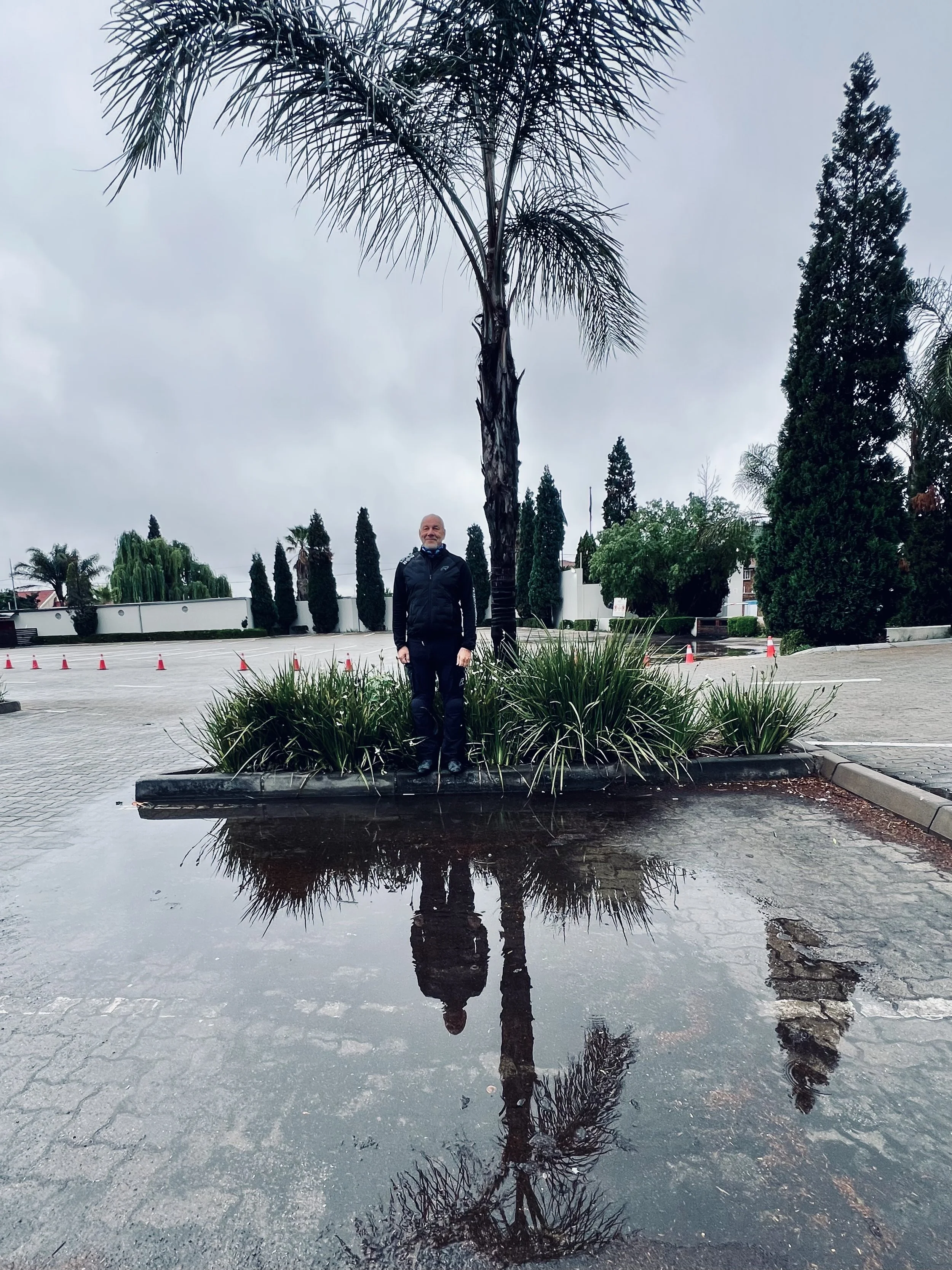 Kun lähdet Afrikkaan ajelemaan moottoripyörällä ja pakkaat matkaan kuuman kelin ajovarusteet ja -asenteen, niin aika hankalaa on hyväksyä koko päivän myrskyä ja kaatosadetta sekä + 11 C.n lämpötilaa - siis Afrikassa! Harvempi oli osannut varata mukaan sade-asuakaan, paitsi Porin seudun pessimistit; siellä sataa kuitenkin…