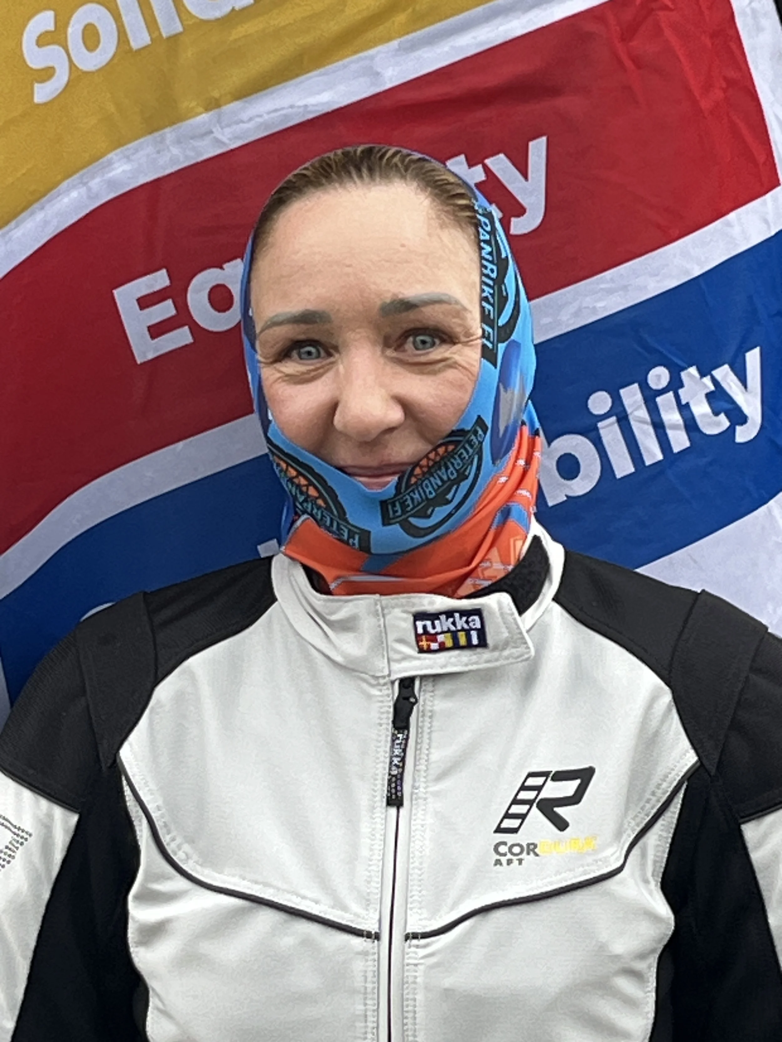 Saija G20 tyyliiin PeterPanBike buffiin pukeituneena.